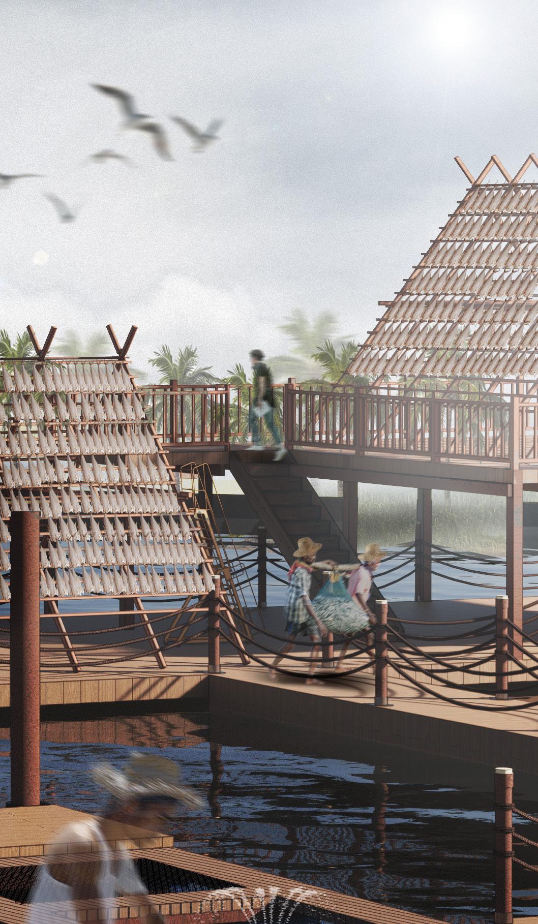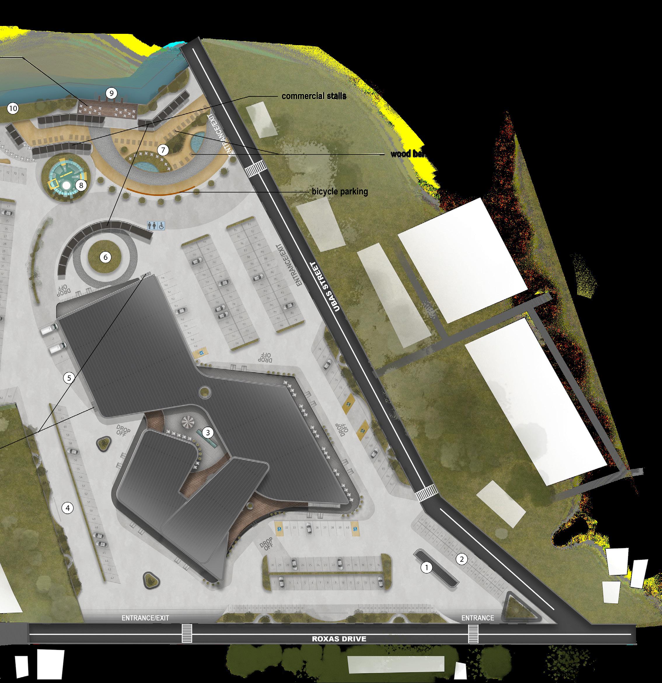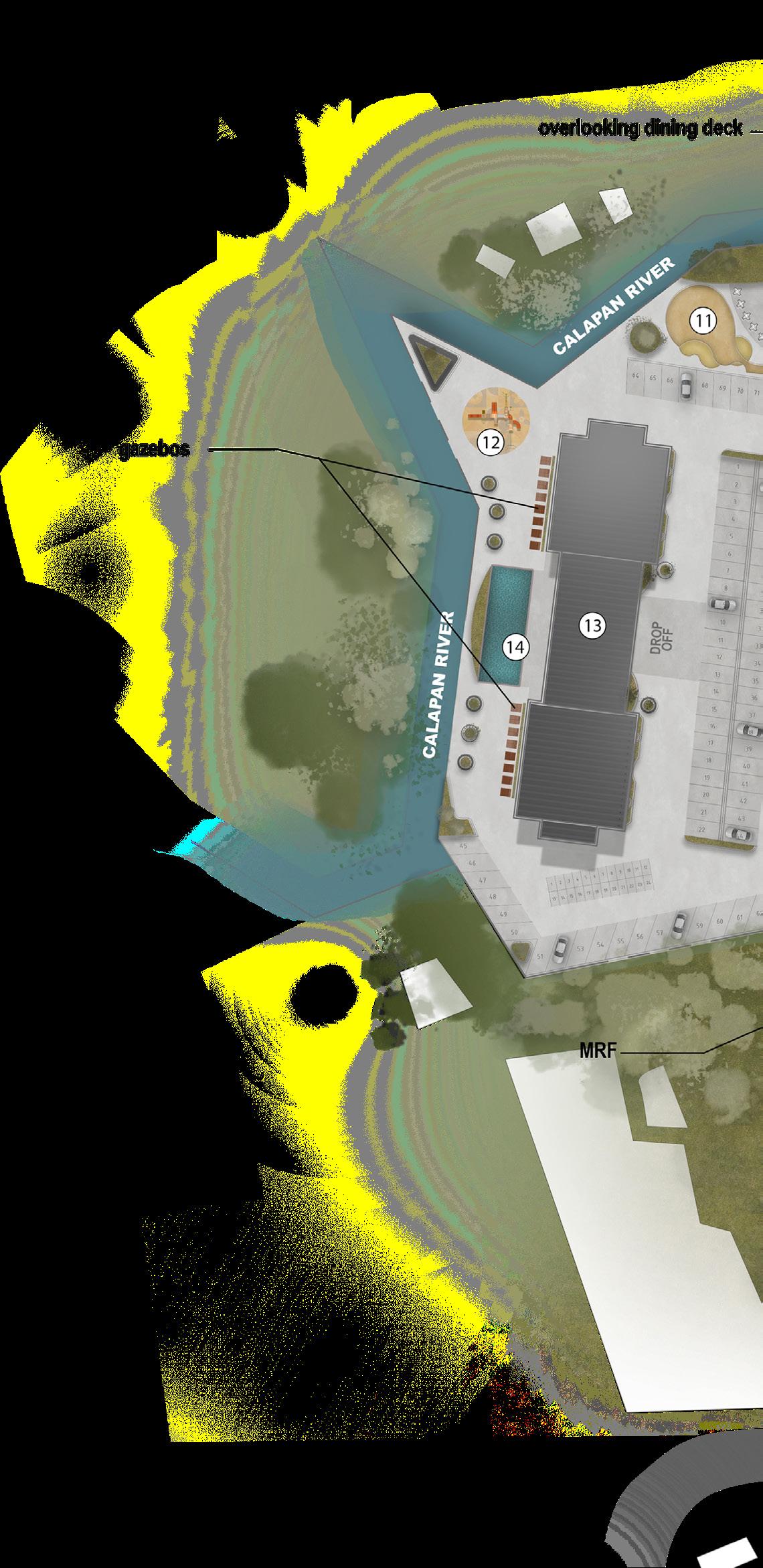 Selected Works 35 1 2 3 6 5 4 9 7 CASILIGAN RIVER SETBACK PROPERTY LINE SETBACK SEWAGE PLANT PVC PANELS RESTING AREA ANAEROBIC DIGESTION WATER TREATMENT FACILITY MRF ENTRANCE EXIT EXISTING BUILDING 10 11 12 8 14 15 13 17 18 20 21 22 19 LEGEND: 1 - Guardhouse 2 - Landmark 3 - Parking Area 4 - Administration Building 5 - Public Restroom/Locker Room 6 - Entrance Center 7 - Restaurant 8 - Fish Market 9 - Hydroponics Garden 10 - Dining Hall 11 - Al fresco Dining 12 - Greenspace 13 - Floating Solar Panels 14 - Cabins 15 - Fishing Quarter 16 - Floating Deck 17 - Fish Processing Facility 18 - Hatchery & Fingerlings Quarter 19 - Staffs’ Quarter 20 - Pavilion 21 - Fish Drying Area 22 - Security Check