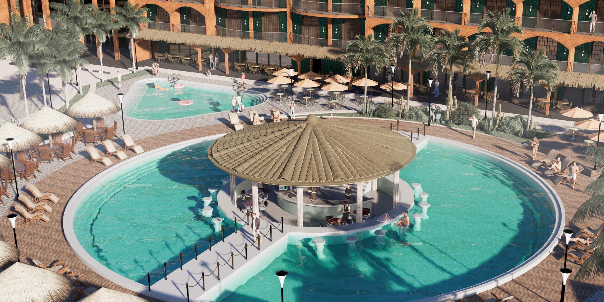 SWIM-UP BAR: to provide guests with a convenient and enjoyable way to enjoy food and beverages while swimming or relaxing in the pool.
