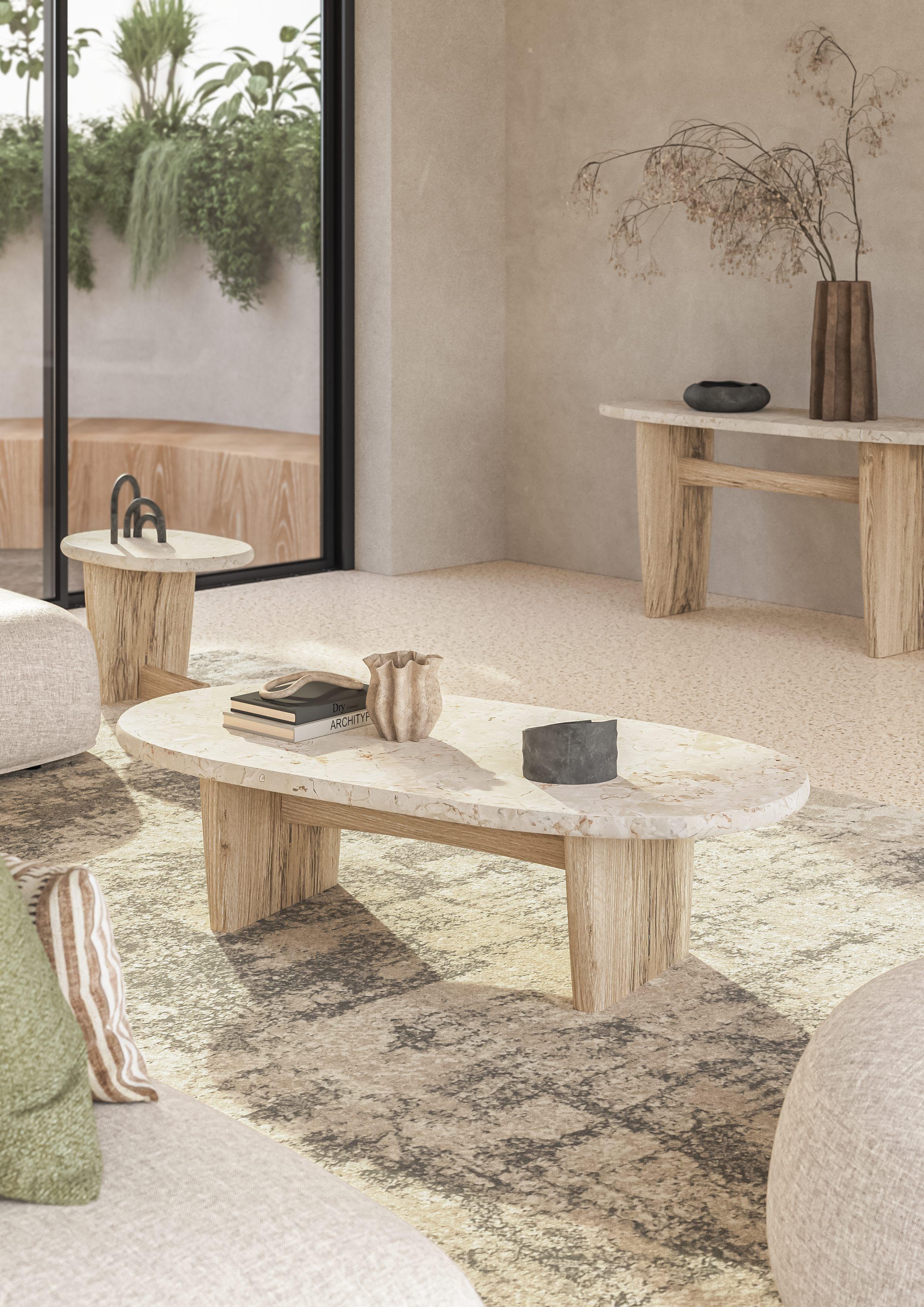 Designed as a complement to its coffee table counterpart, the Isabella End Table offers a fresh perspective on organic elegance. With the same refined materials, it reinterprets natural beauty in acompact,versatileform.