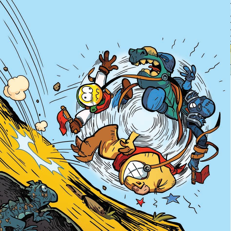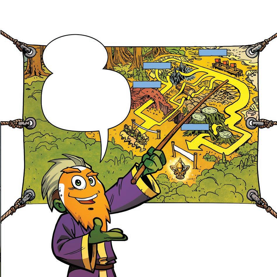 Zagga kommer hurtigt på benene, og Minno rækker ud efter det sidste flag. “Juhuuu!” råber han triumferende. “Nu skal vi bare tilbage ... i en fart!”
