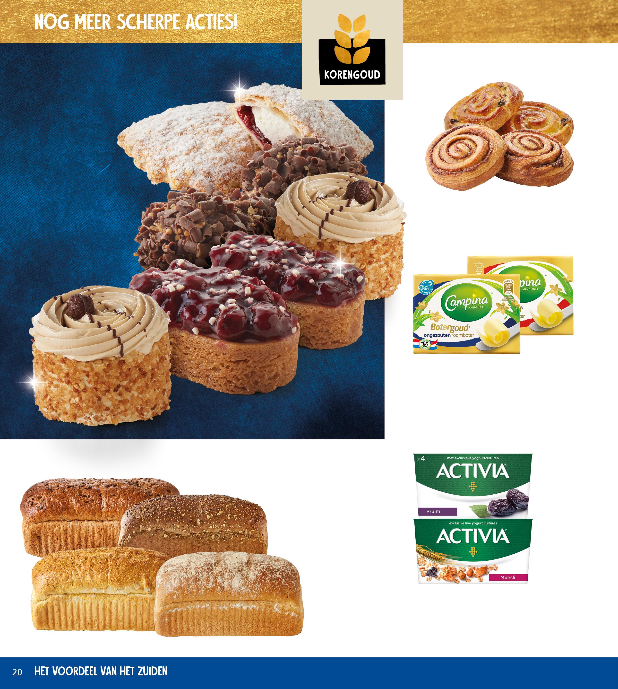 Korengoud stuksgebak kersenflap met slagroom, hazelnoot crème bollen mini slofjes monchou of hazelino’s, pak 2 stuks 3,49 2,99 Bestel jouw gebak op janlinders.nl/gebak 2 voor 1,00 Korengoud koffieof kaneelbroodjes 2 stuks 1,18 korting 25% Campina botergoud roomboter alle varianten pak 200-250 gram 2,89 3,99 2,17-2,99 2 voor 4,00 boerenbroden heel donker meergranen 2 voor 3,50 Activia 4-pack alle varianten 2x pak 4x125 gram 3,70 - 4,58 Beste brood afdeling 17x