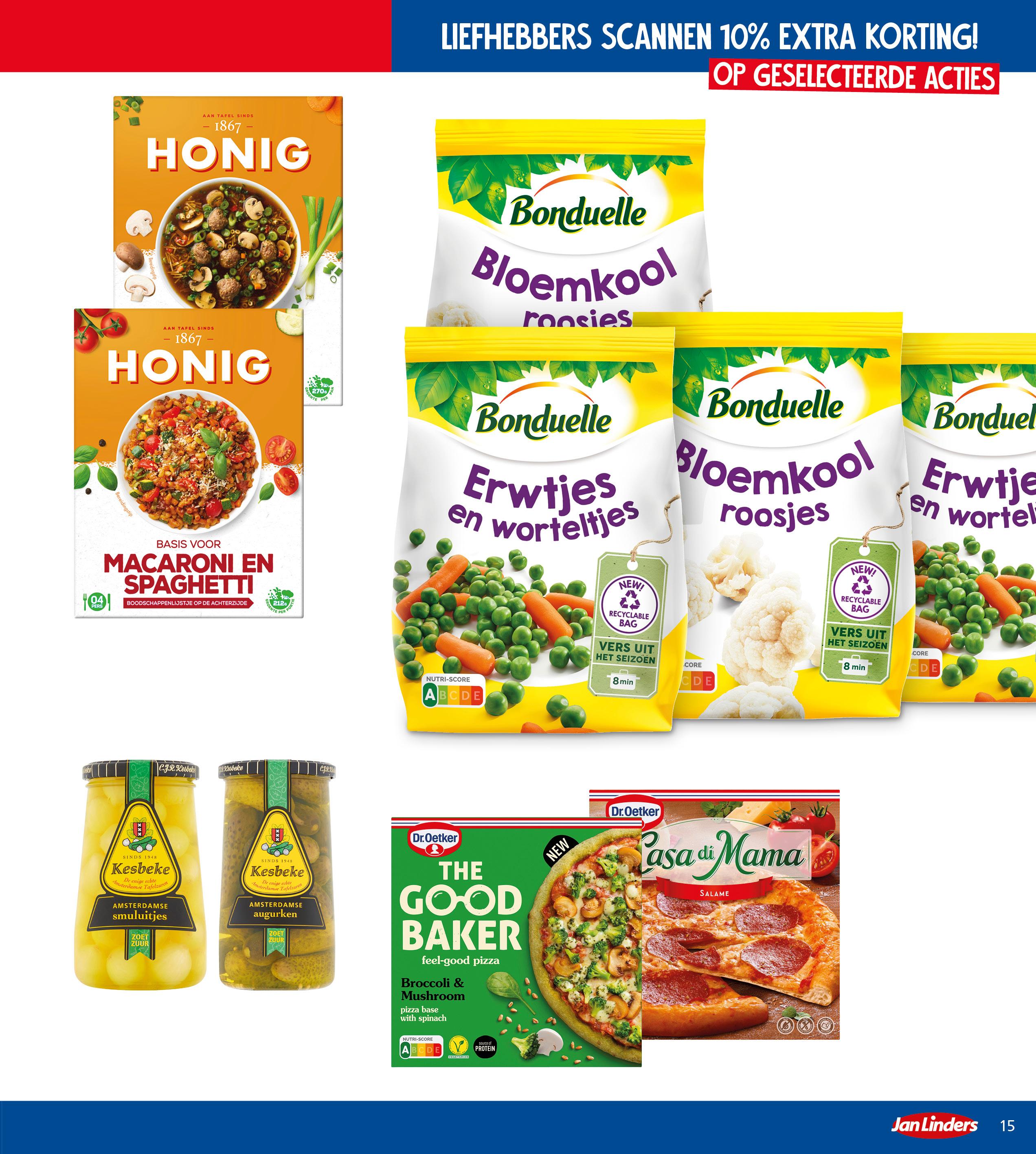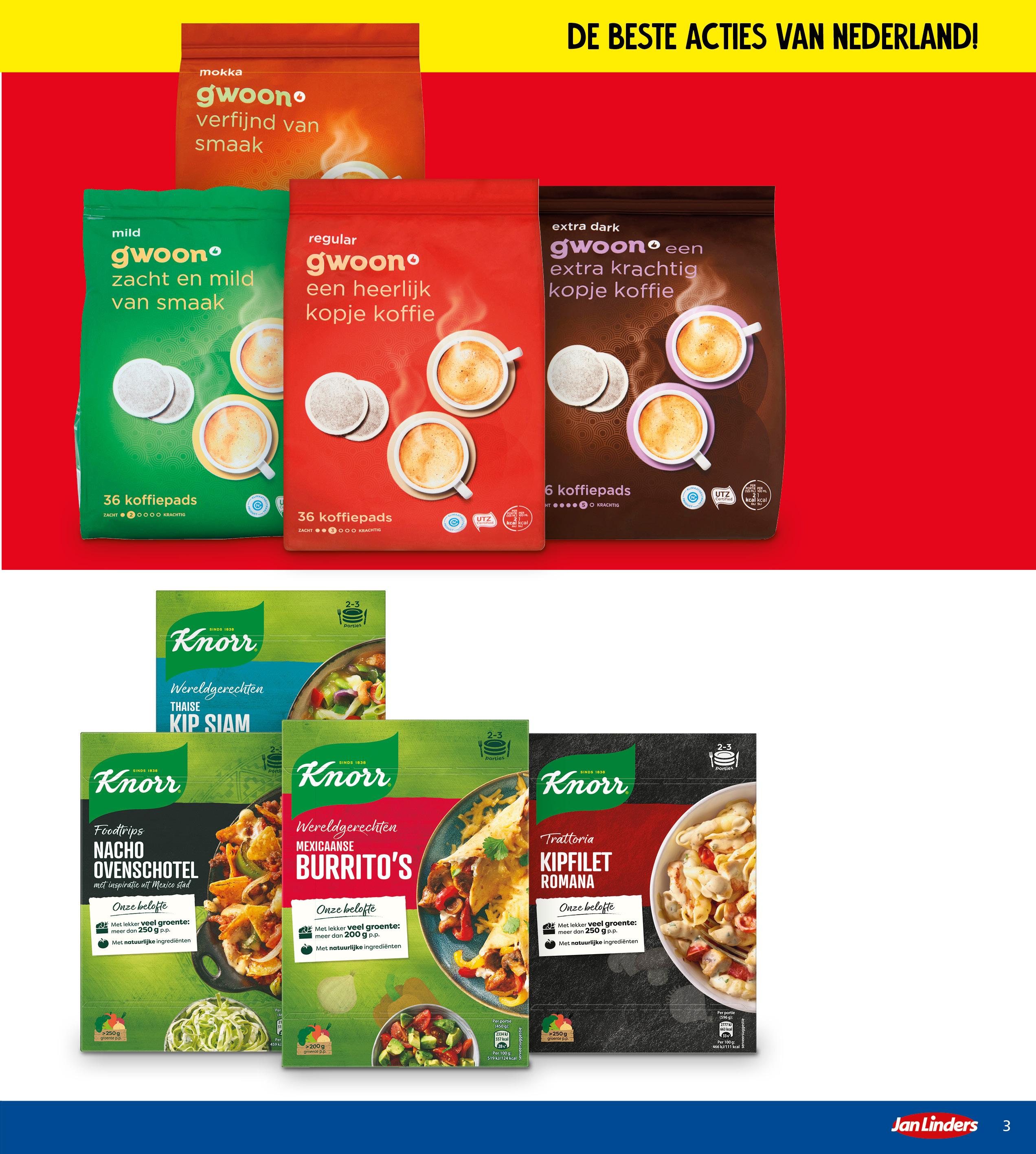 Aanbieding uitverkocht? Vraag gerust een tegoedbon (m.u.v. op=op en producten buiten standaard assortiment). Het aantal eenheden per actie is vastgesteld op max. 12 per klant (particulieren). Voor bieraanbiedingen: max. 6 kratten/trays per klant. Geen alcohol-/tabakverkoop aan personen <18 jaar. Bij een actie geldig bij meerdere stuks, is de actieprijs alleen van kracht bij het genoemde aantal producten. Bloemen zijn vanaf dinsdag verkrijgbaar en worden niet verkocht in Gennep, Eindhoven, Brunssum en Maastricht De Heeg. Onder voorbehoud van prijswijzigingen/zetfouten. Folder niet ontvangen? Meld dit op janlinders.nl/folderklachten Heb je nog tips of vragen? Ga naar janlinders.nl/klantenservice