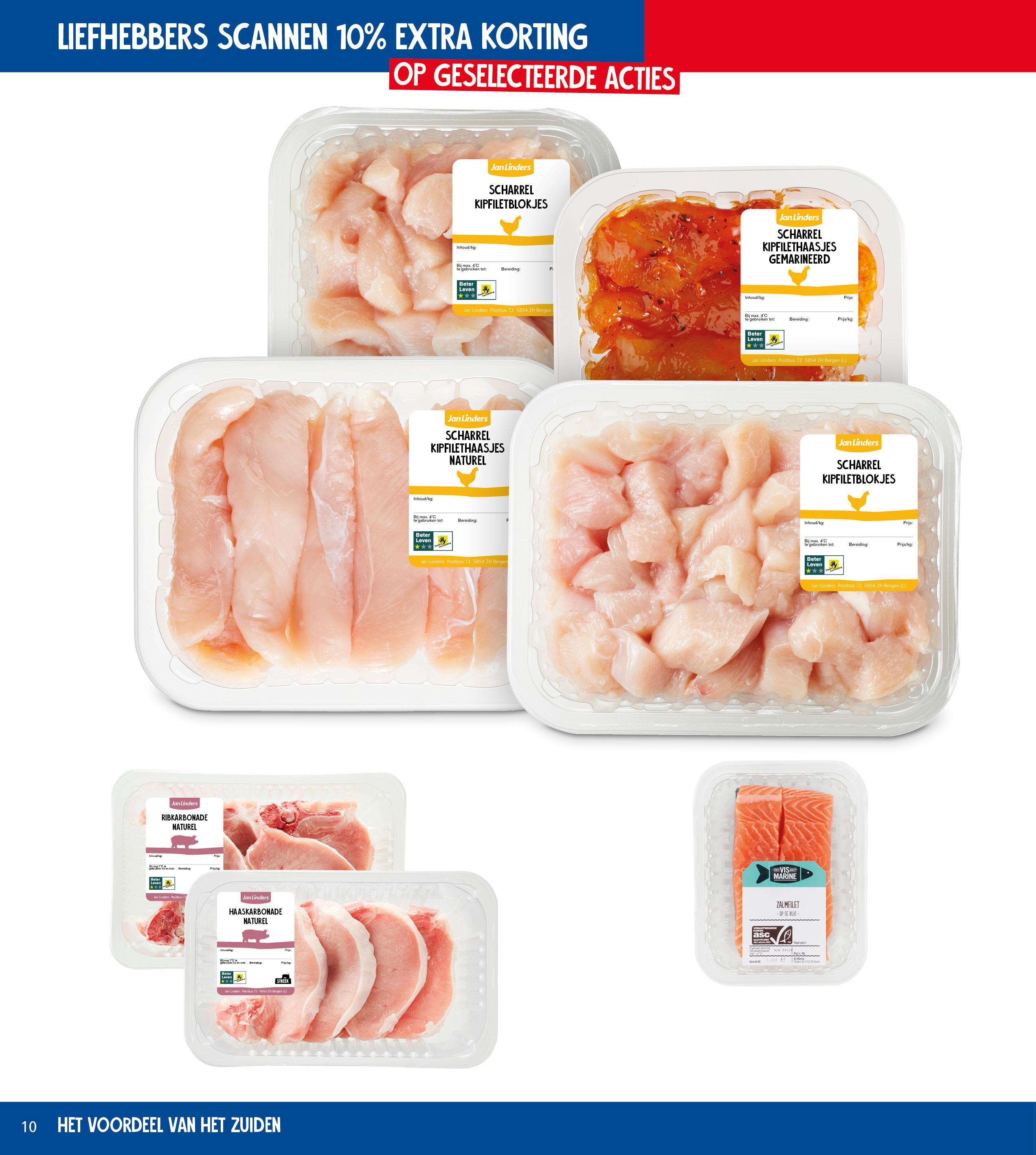 Rib- of haaskarbonade naturel of gemarineerd per 500 gram 4,99 - 5,50 3,99 Prijs per kilo 7,98 4,99 Prijs per kilo 19,96 Vismarine zalmfilet op huid per 250 gram 5,49 Scharrel kiphaasjes of kipfiletblokjes gemarineerd, gepaneerd of naturel 2x pak 275 gram 9,1 0 - 9,58 2 voor 7,50 10% EXTRA KORTING voor Liefhebbers op betreffende acties wordt berekend over de actieprijs.