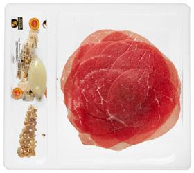 gerookte kaas, kruidenkaas, Napoli salami, crudo, groene olijven en gedroogde tomaten schaal 320 gram
