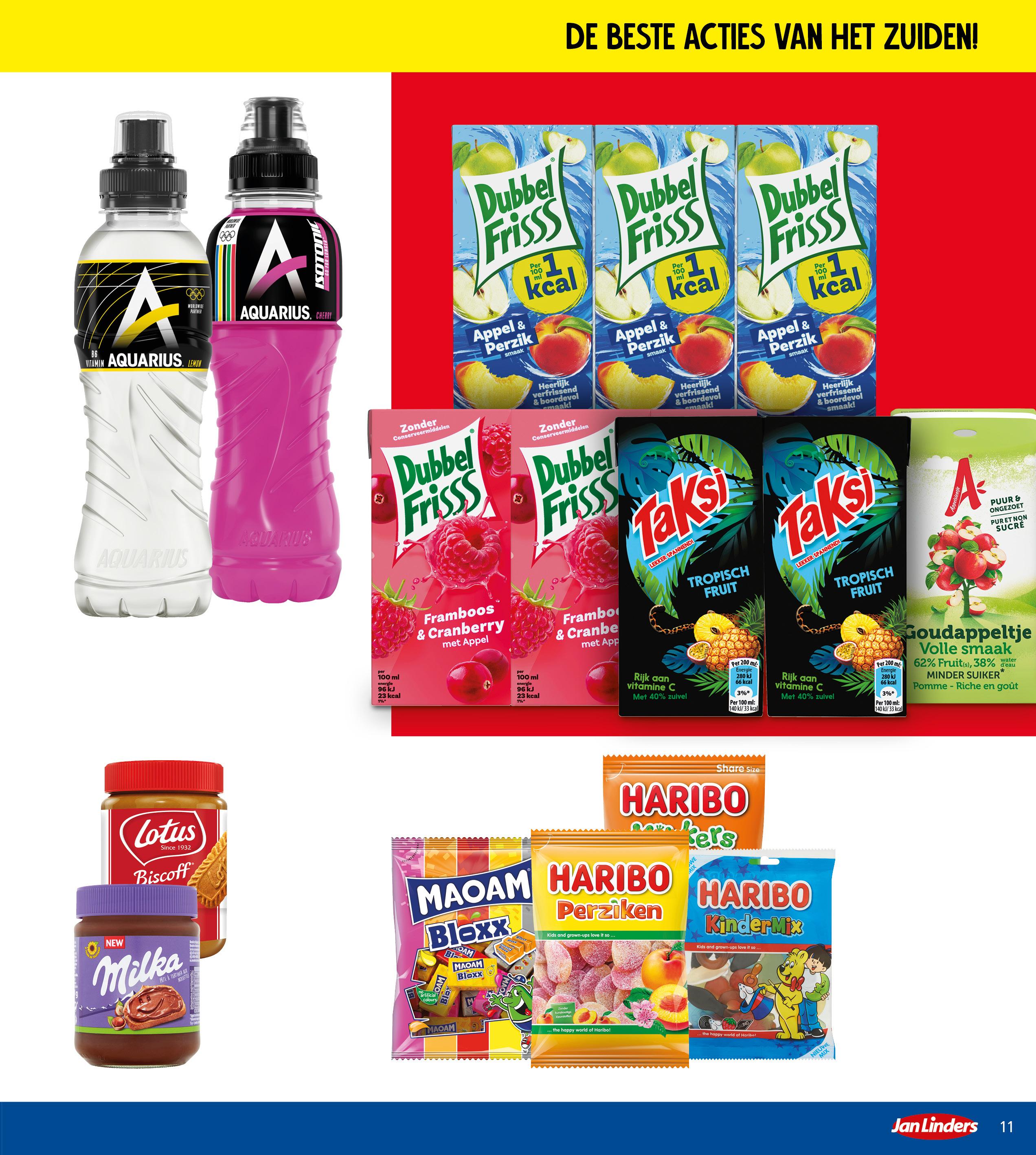 prijs 2E halve Milka hazelnootof Lotus speculoospasta alle varianten 2x pot 350-720 gram 5,98 - 11,90 4,49- 8,93 gratis 1 +1 Aquarius alle varianten 2x fles 500 ml 3,18 1,59 2 voor 3,00 Haribo of Maoam alle varianten 2x zak 175-260 gram 3,18 - 3,98