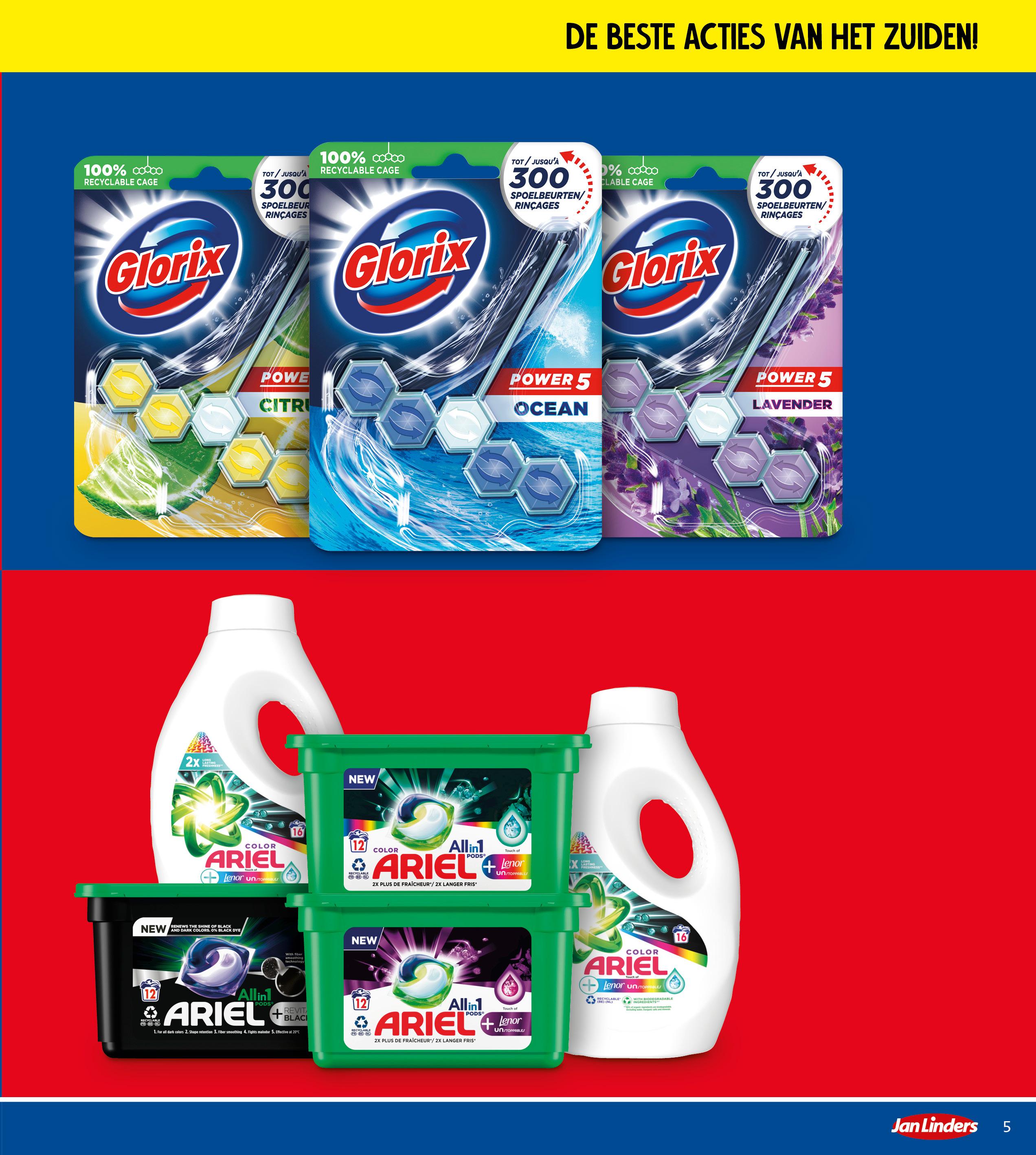 Ariel pods+ of vloeibaar+ alle varianten 5x pak 12 stuks of fles 765-800 ml 54,95 - 59,95 21,98 -23,98 gratis 2+3 Glorix toiletblokken alle varianten pak 1 stuk 3,1 9 - 3,89 1,00 =tot 74% KORTING = 60% KORTING 2+3 GRATIS: 60% korting op de totaalprijs van 5 producten.