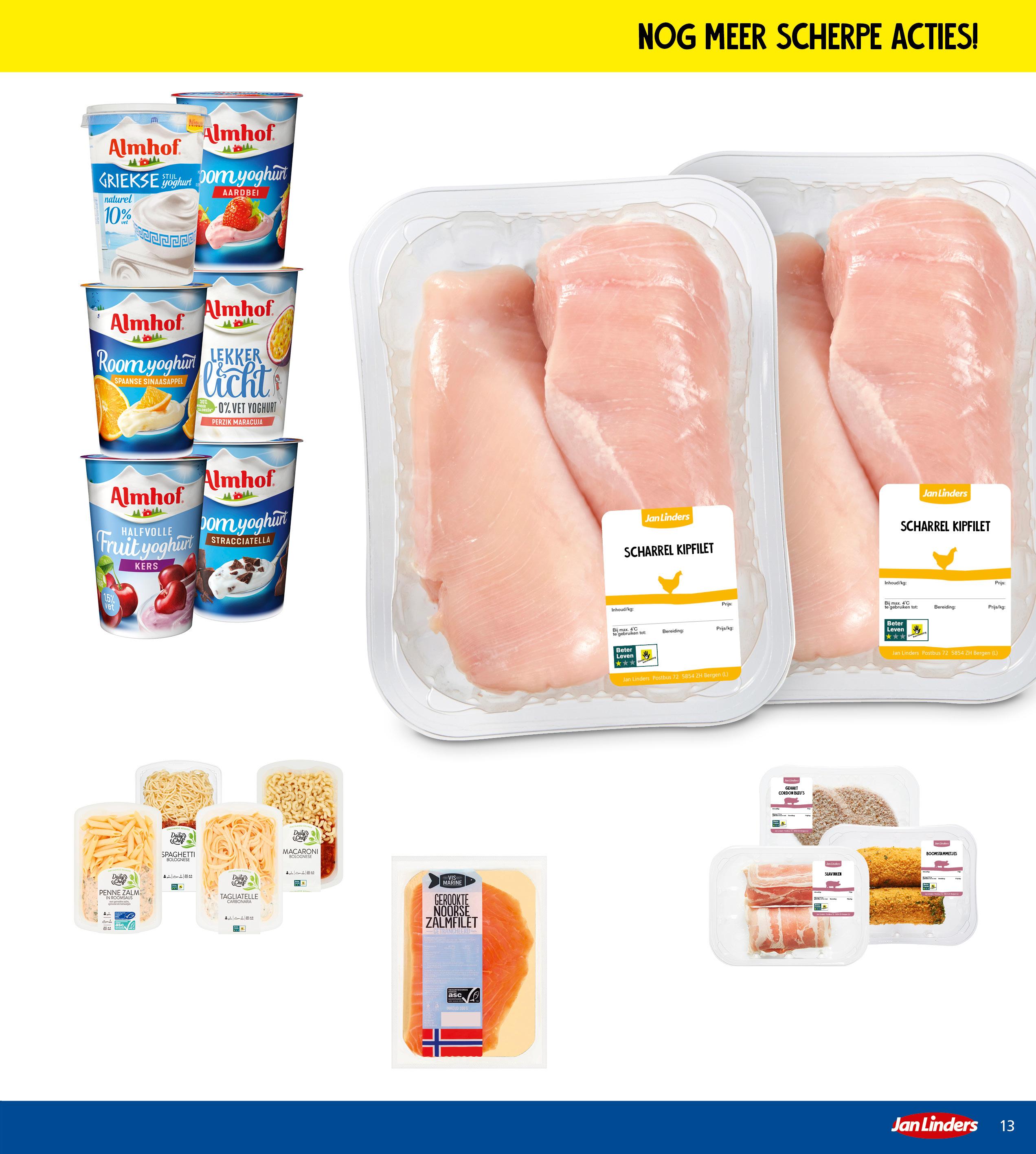 2,99 Prijs per kilo 29,90 Vismarine gerookte Noorse zalmfilet pak 100 gram 4,49 Scharrel kipfilet pak 1 of 2 stuks per 250 gram 3,82 - 4,49 2,99 Prijs per kilo 11,96 1,99 Prijs per kilo 9,05 Boomstammetjes, slavinken of gehakt cordon bleu’s pak 2 stuks 2,39 - 2,59 2 voor 4,50 Daily Chef kant-en-klare pasta maaltijden alle varianten 2x pak 450 gram 4,98 - 7,18 2 voor 3,00 Almhof yoghurt alle varianten 2x beker 450-500 gram 3,98 - 4,58