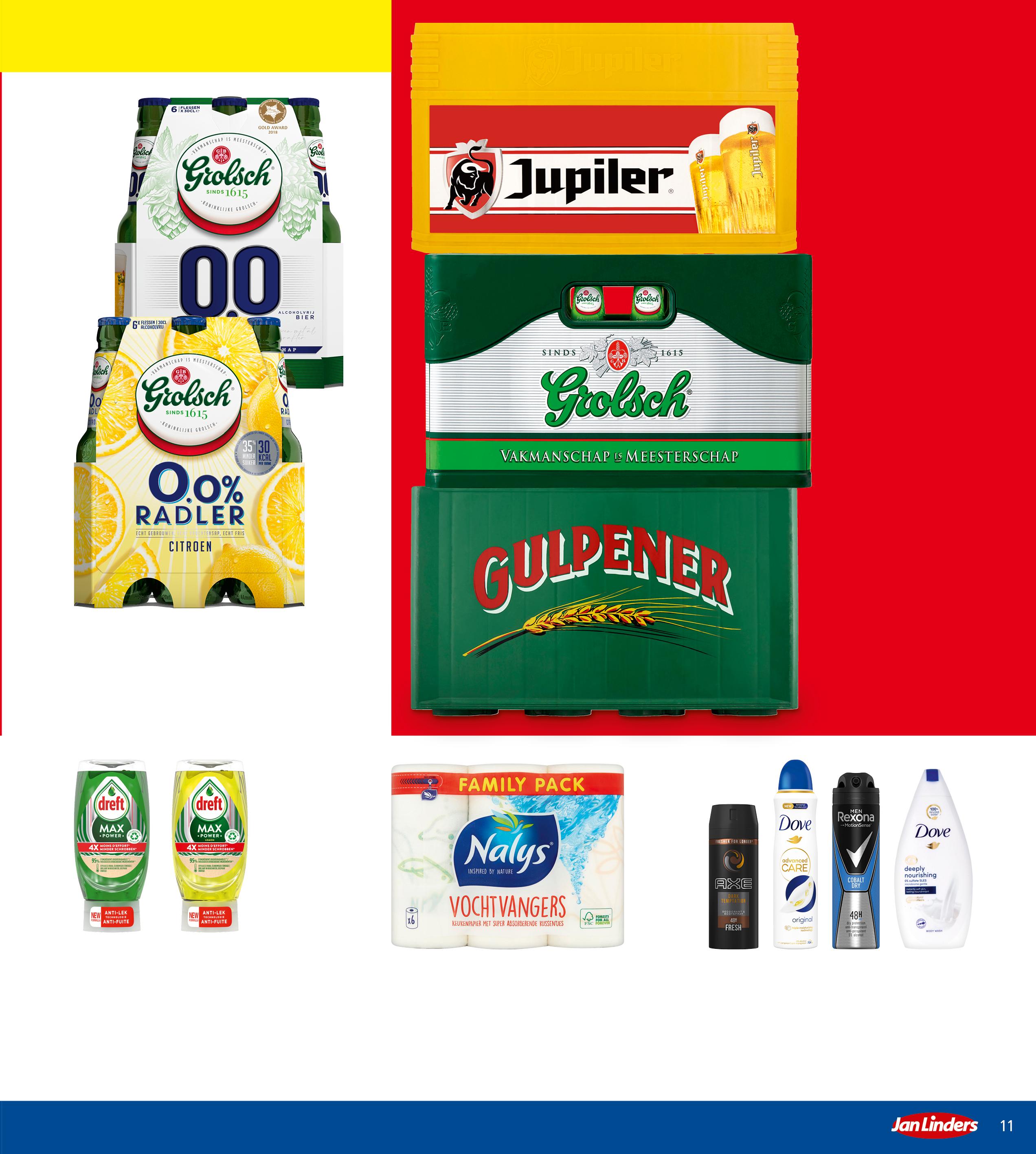 korting 50% Nalys Vochtvangers keukenpapier pak 6 rollen 8,49 4,25 gratis 1 +1 Axe, Dove of Rexona alle varianten 2x bus of fles 50-750 ml 5,38 - 17,98 2,69- 8,99 gratis 1 +1 Dreft handafwas Max Power alle varianten 2x fles 370 ml 7,98 3,99 Jupiler, Gulpener of Grolsch pilsener krat 24x 25/30 cl 15,98 - 17,32 12,99 Prijs per liter vanaf 1,80 gratis 1 +1 Grolsch 0.0% alle varianten 2x tray 6x 30/33 cl 8,38 - 11,18 4,19-5,59 EXTRA SPAARZEGEL! 1+1 GRATIS: 50% korting op de totaalprijs van 2 producten.