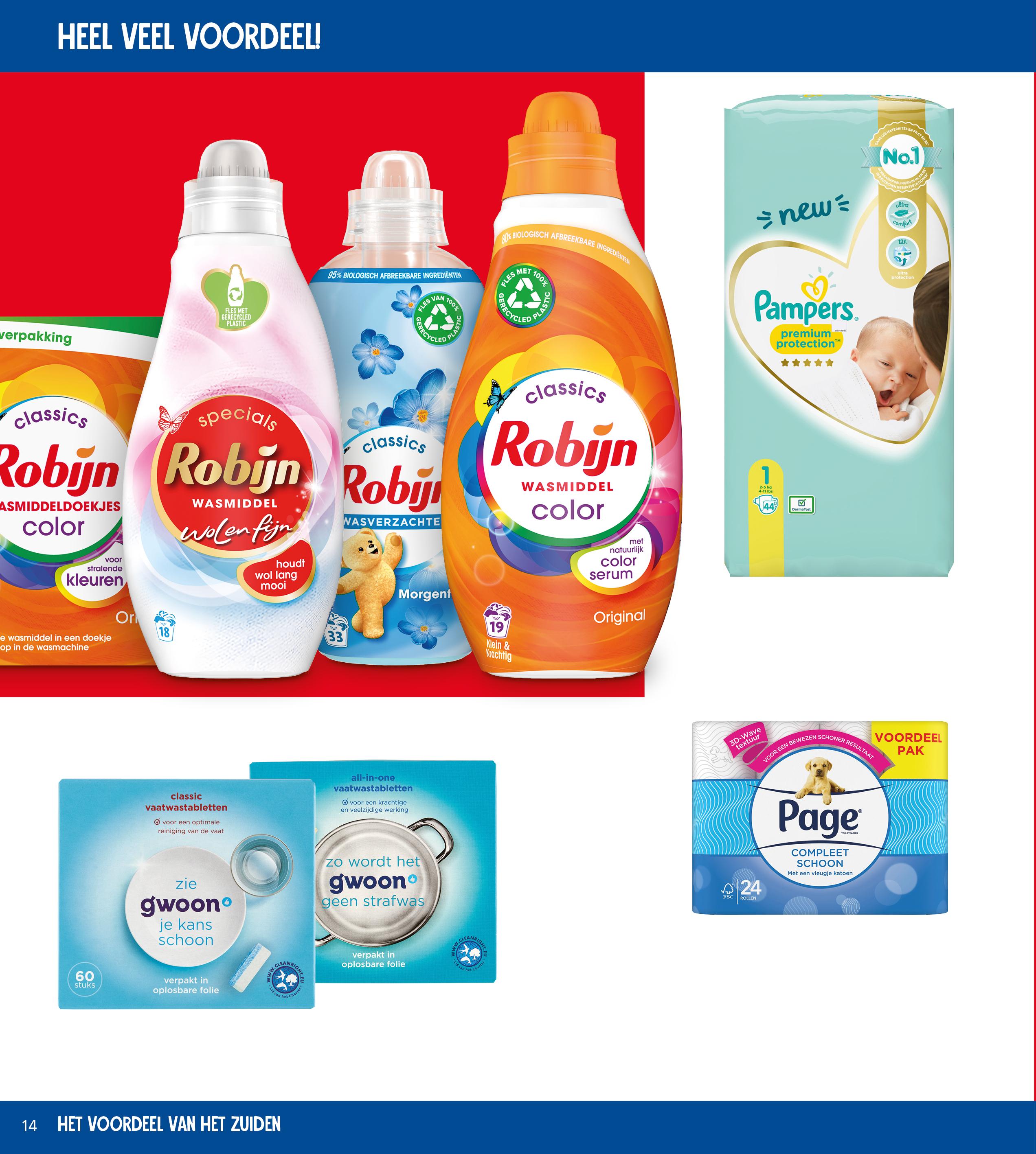 Page toiletpapier* Compleet Schoon voordeelpak 24 rollen 16,99 * Maximaal 3 per klant. Robijn alle varianten 2x fles of pak 6,38 - 25,98 3,19-12,99 gratis 1 +1 5,00 Pampers premium protection maat 1 pak 44 stuks 13,99 1+1 GRATIS: 50% korting op de totaalprijs van 2 producten. 10,99 =tot 64% KORTING gratis 1 +1 g’woon vaatwastabletten alle varianten 2x pak 30 60 stuks 5,38 - 7,78 2,69-3,89 Oók deze folder AlleFolders app lees je in de Download AlleFolders allefolders.nl AlleFolders