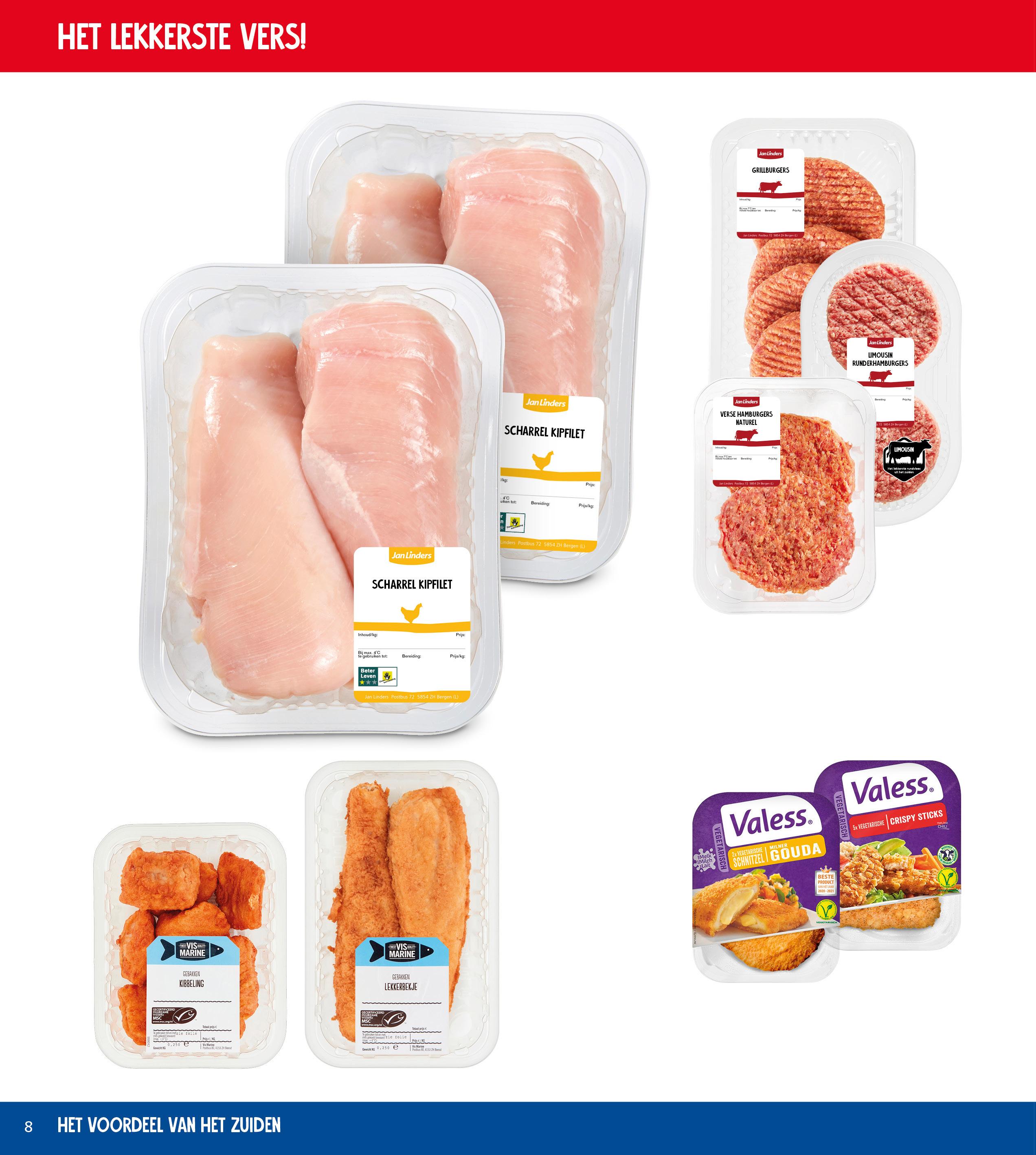 2,99 Prijs per kilo 11,96 Vismarine kibbeling of lekkerbekje pak 250 gram 3,74 - 3,89 2 voor 5,00 Valess alle varianten 2x pak 160-180 gram 6,98 - 7,98 Scharrel kipfilet 1 of 2 stuks per 250 gram 3,82 - 4,49 2,99 Prijs per kilo 11,96 korting 25% Alle verse hamburgers pak 2-8 stuks 2,99 - 9,69 2,24 -7,27