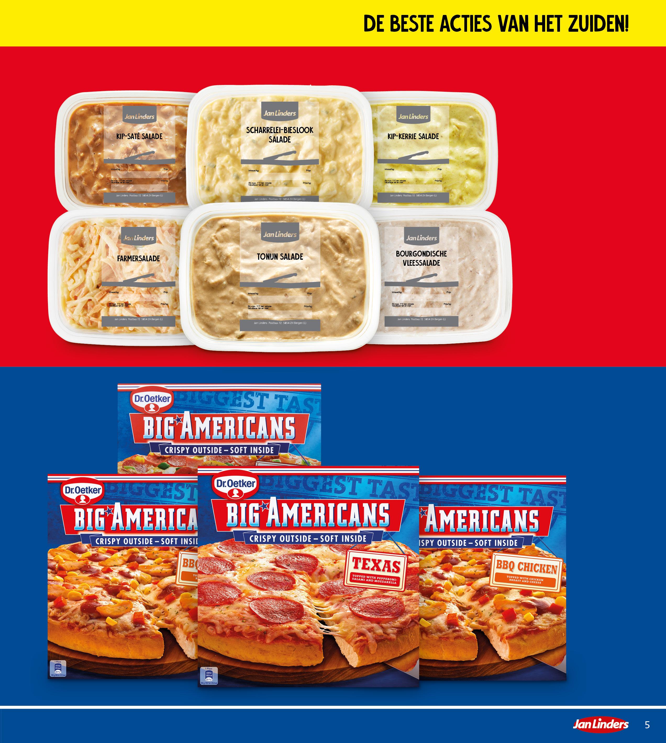 Jan Linders salades alle varianten 2x bakje 150 gram 2,50 - 4,98 1,25 -2,49 gratis 1 +1 Dr. Oetker Big Americans pizza alle varianten 2x pak 385-460 gram 9,58 4,79 gratis 1 +1 1+1 GRATIS: 50% korting op de totaalprijs van 2 producten. 5 de beste acties van het zuiden!