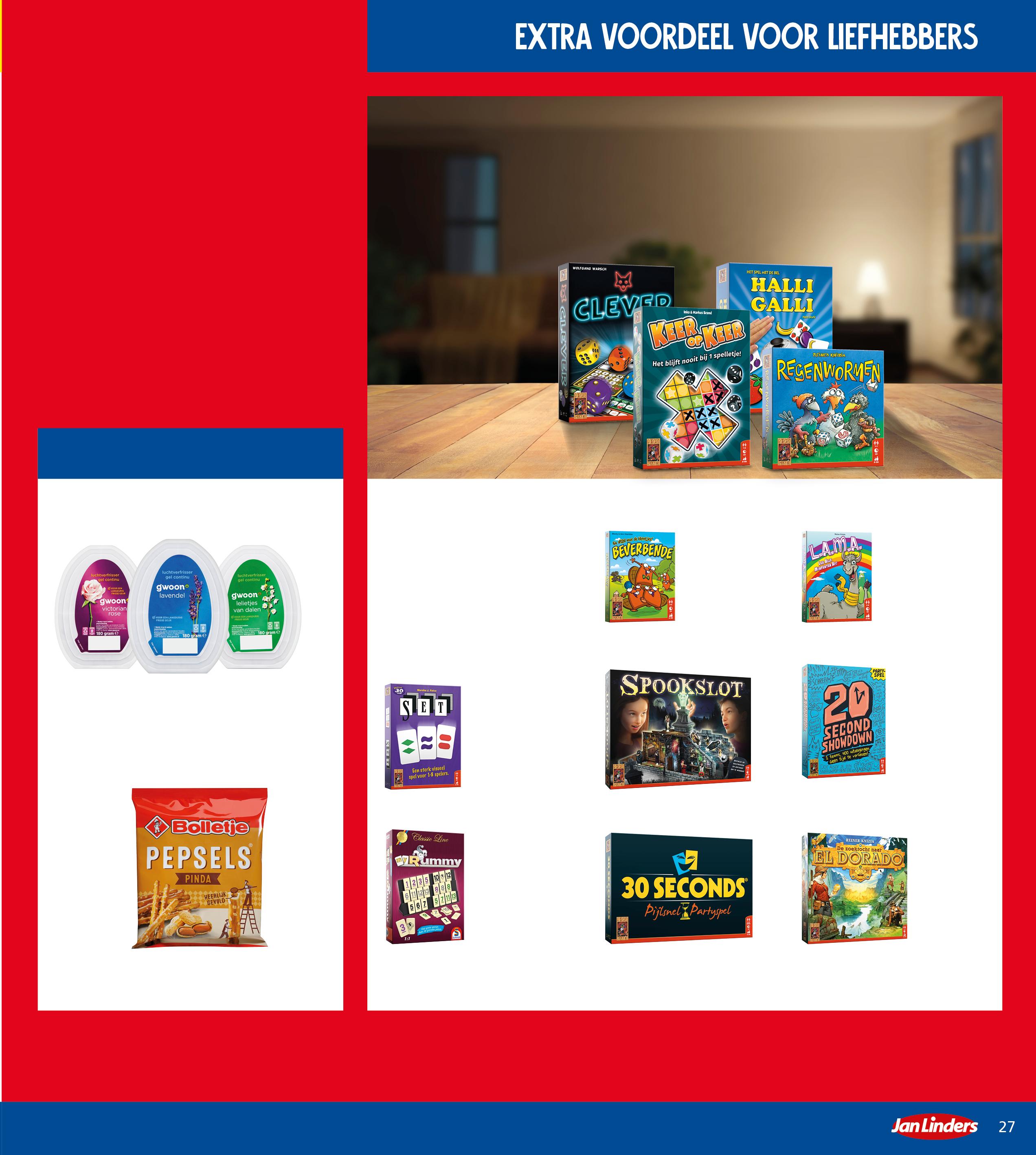 Aanbieding uitverkocht? Vraag gerust een tegoedbon (m.u.v. op=op en producten buiten standaard assortiment). Het aantal eenheden per actie is vastgesteld op max. 12 per klant (particulieren). Voor bieraanbiedingen: max. 6 kratten/trays per klant. Geen alcohol-/tabakverkoop aan personen <18 jaar. Bij een actie geldig bij meerdere stuks, is de actieprijs alleen van kracht bij het genoemde aantal producten. Bloemen zijn vanaf dinsdag verkrijgbaar en worden niet verkocht in Gennep, Eindhoven, Brunssum en Maastricht De Heeg. Onder voorbehoud van prijswijzigingen/zetfouten. Folder niet ontvangen? Meld dit op janlinders.nl/folderklachten Heb je nog tips of vragen? Ga naar janlinders.nl/klantenservice