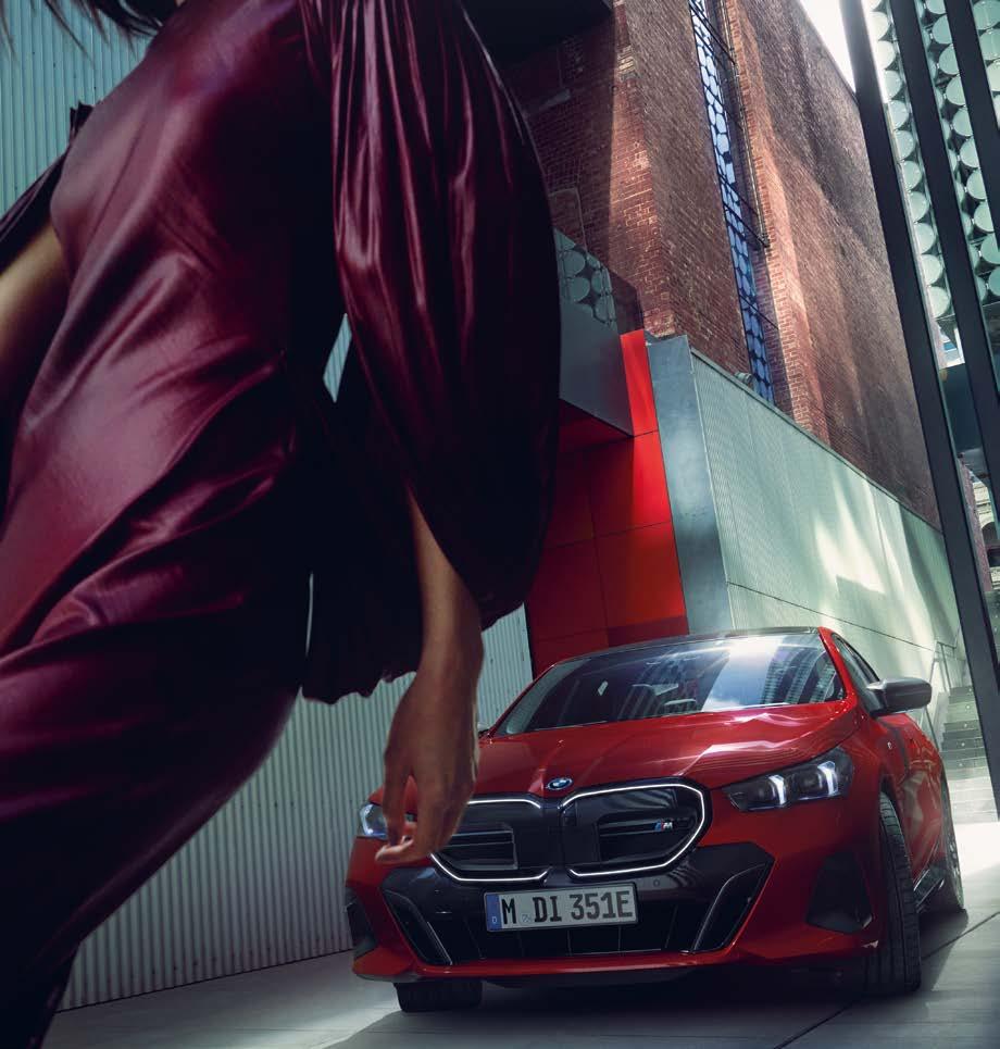 silhuet. Set fra siden formes designet af de markante linjer, sorte sidepaneler og forsænkede døråbninger. Det klassiske Hofmeister-knæk ved C-stolpen præges af et 5-tal for yderligere blikfang. De dynamiske proportioner fortsætter til den markante bagende, hvor flade, skulpturelle baglygter er en ny fortolkning af det velkendte L-design. Den dynamiske karakter kan understreges yderligere ved valg af M Sportspakken og M Sportspakke Pro, der tilføjer mørke designelementer og større hjul, for den mere sportslige køreoplevelse.