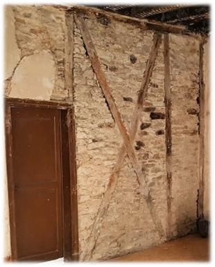 Flera märken ristade av den mästare som huggit och format bjälkarna återfinns, tysta vittnen till tidens gång. En fransk bonad i medeltida stil kommer snart att berika helheten och ytterligare framhäva platsens historiska karaktär.