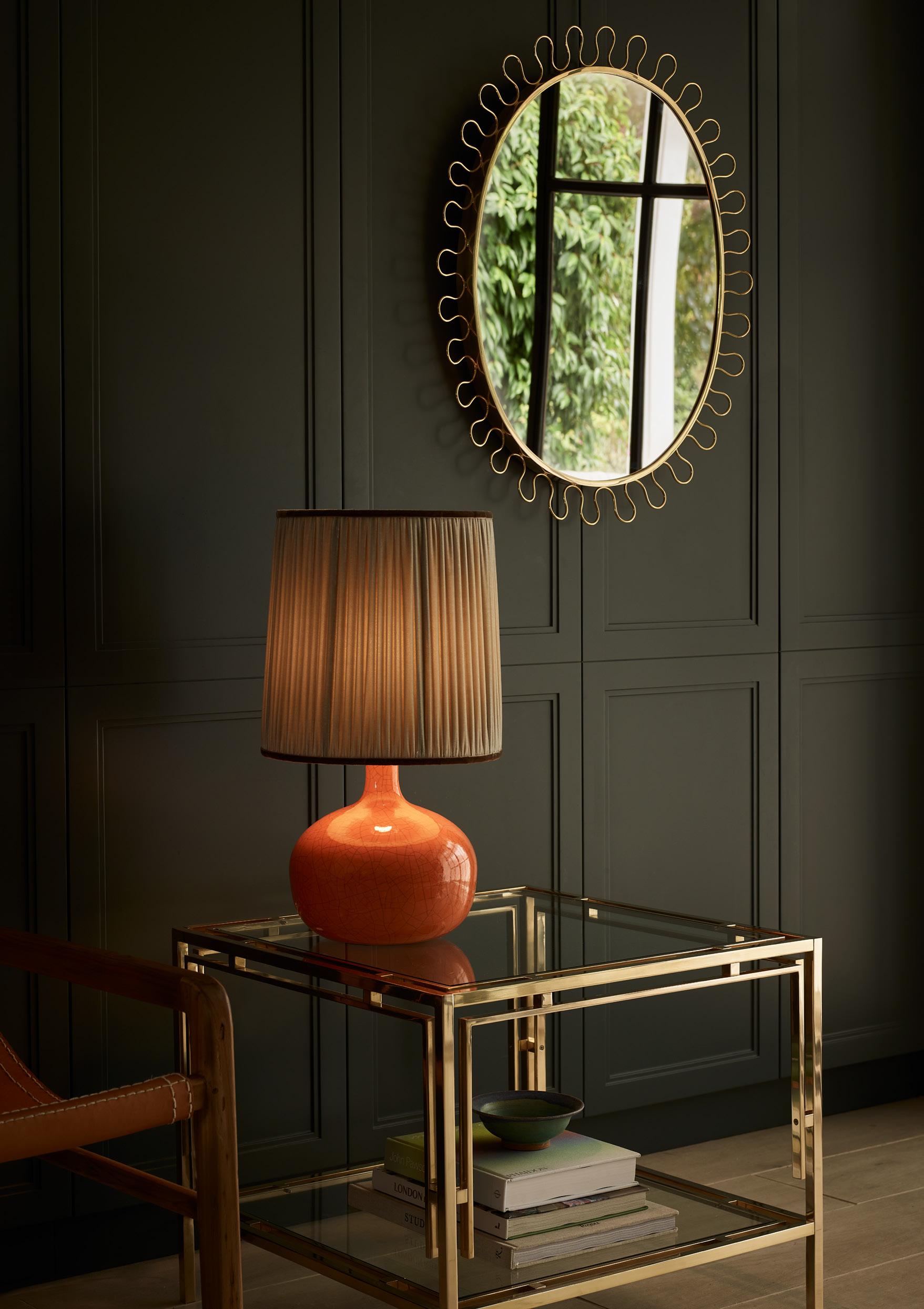 Inspired by mid-century French pottery, this table lamp is produced in slip cast earthenware. The bold colours are given a crackle glaze which adds a textural layer. Available in olive green and orange.
