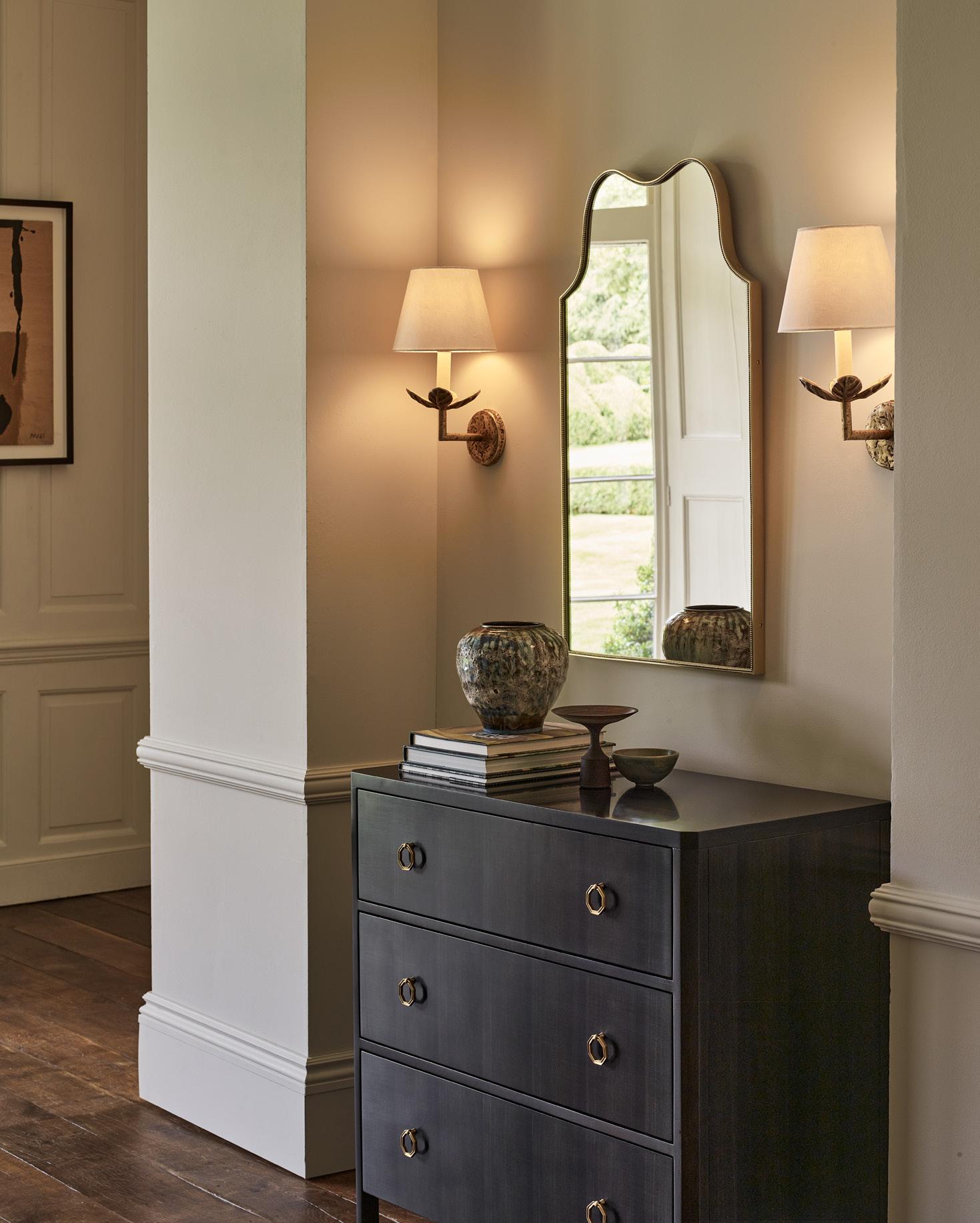 With a small round backplate, the Midhurst Reading Light is ideal for installing in narrow spaces and is suited to being positioned on headboards and bookcases. With a flexible arm and an LED bulb, it is supplied with a custom wall box. Available in brass or bronze finishes.