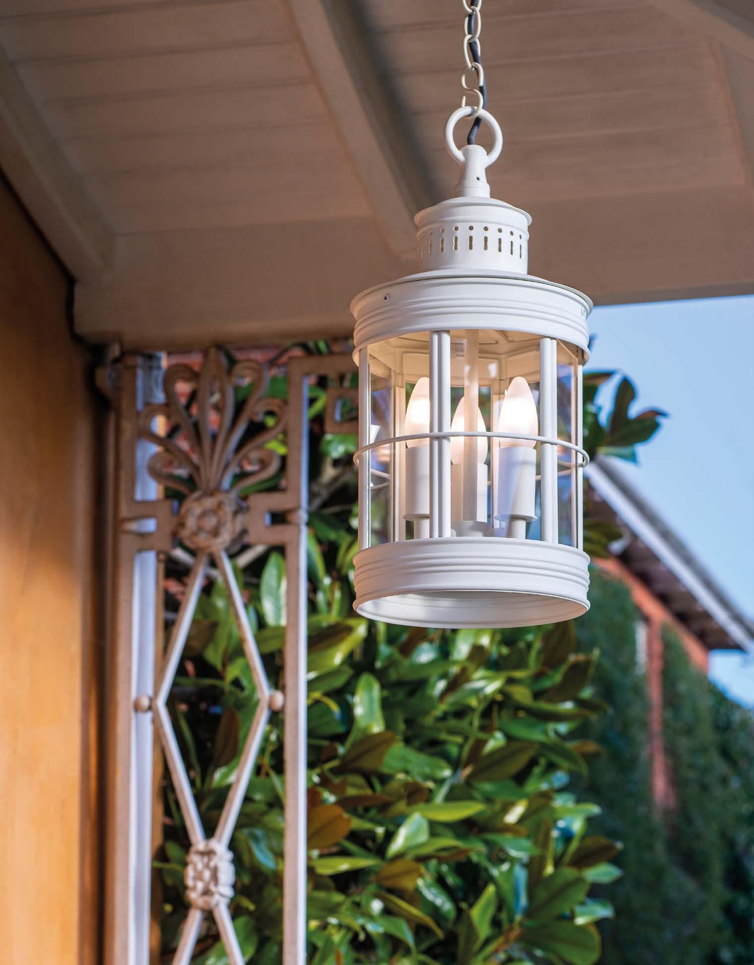 This lantern is based on a similar 19th century antique. Small in scale the design features intricate pierced metalwork and is finished in ivory white. Although designed for outdoor use this lantern works equally well in an interior setting. IP44 rated for external use.