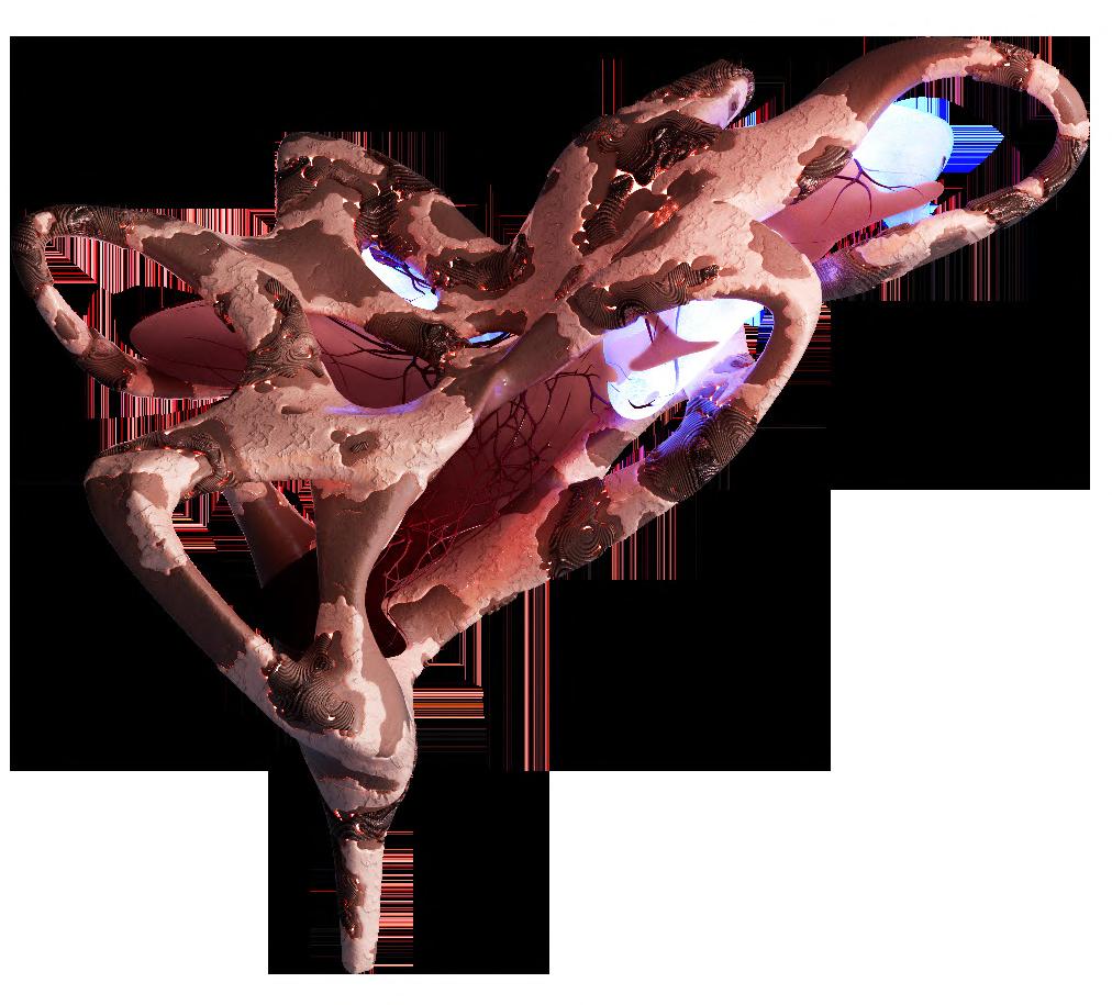 Echo is a companion to our Prosthesis, he’s role is to scout the terrain. He comunitactes with the Prosthesis through vibrating horns and leaves a path of glowing particles for followers of his tracks.