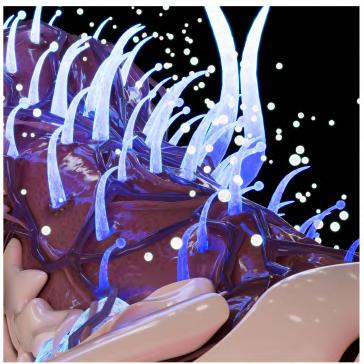 synaptic conflux is a hive mind society oriented around survival and expansion. it has adapted to the surroundings, tentacle like fingers give advantage in climbing and crystal horns allow communication with the rest of the hive
