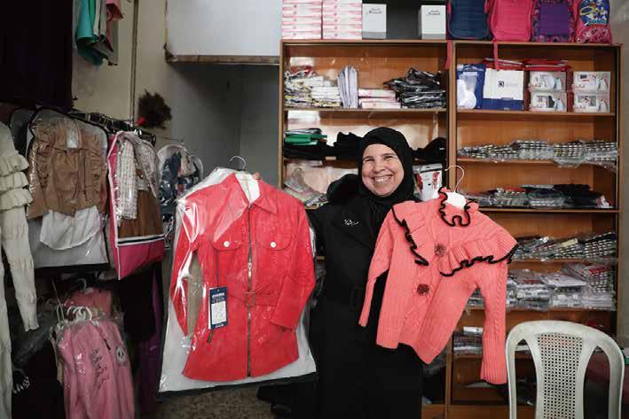 一家はドゥーマに戻り ましたが自宅はがれきと化していました。そんな失意の中で訪れたのが、新たなチャンスでした。 申し込んでいた生計プログラムのプロジェクトが承認されたのです。 「それは自分の衣料品店を持つと いう、何年も抱き続けてきた夢でした」とイマンさん。
