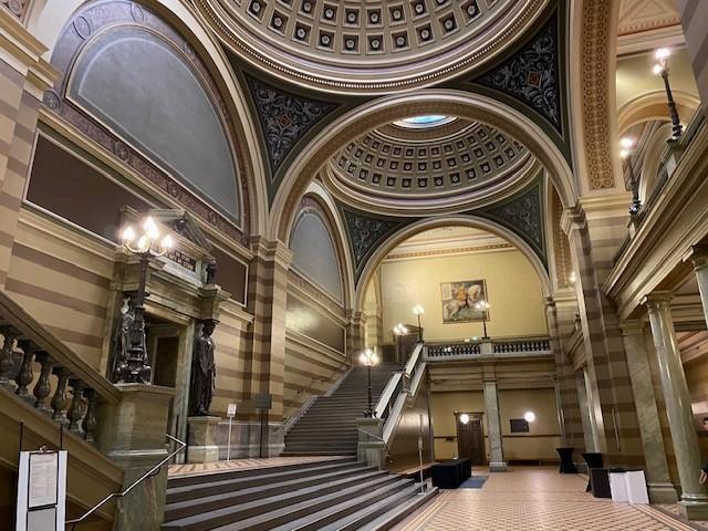 ウプサラ大聖堂やその真向いにあるグスタヴィアヌム(歴史博物館)、ウプサラ城やリンネ庭園といっ た観光スポットは旅行ガイドでも紹介されているので、ここでは触れませんが、ウプサラ訪問の機会 があれば、是非 度訪れていただきたいのがウプサラ大学本館(Universitetshuset) とその講堂 (Universitetsaula) です。建物の外観もさることながら、その内部は 見の価値があります。