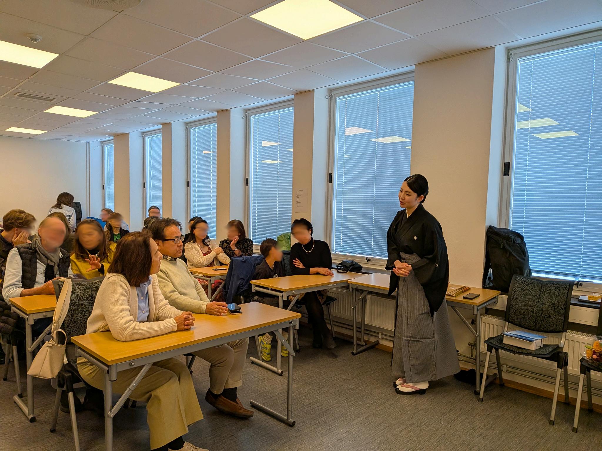 Anmälningarna fylldes på bara några timmar, vilket visar det stora intresset för evenemanget. Under föredraget gavs en tydlig och lättförståelig introduktion till Nō-teaterns historia, rörelser och symbolik, vilket gjorde det möjligt även för nybörjare attuppskattadessskönhet.Tidengick snabbtochpublikenvardjuptfascinerad.