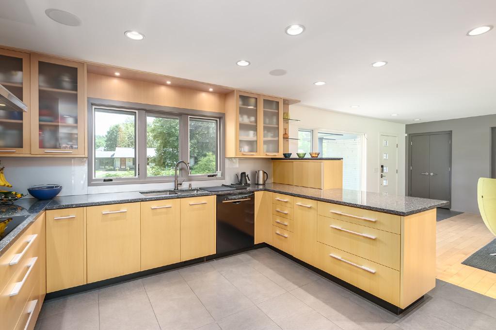 This classic all-limestone mid-century home has been completely updated inside and out by its architect/owner. The site features extensive landscaping. The main living area has been reconfigured to provide an open living, dining and kitchen area perfect for entertaining or daily living. The lower level has been configured with a workout or recreation area and guest suite with separate kitchenette.
