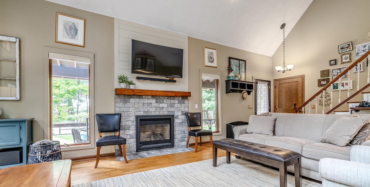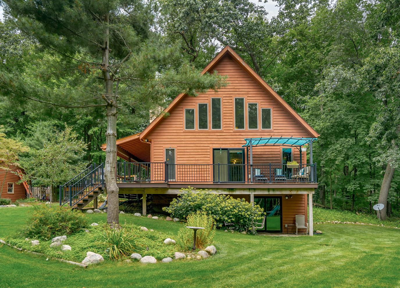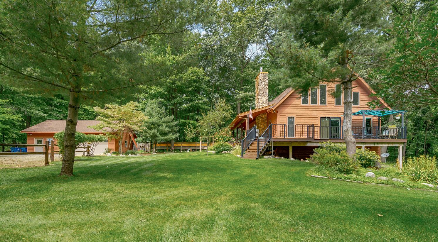 Welcome to this absolutely beautiful home nestled on a very private wooded lot that sits off the road giving it that ''Up North'' feel. The large covered front porch wraps around the home where you can sit and enjoy your beautifully landscaped yard and sunsets over the vineyard. Inside you are greeted with an open floor plan that is perfect for entertaining and enjoying the spectacular 23-foot vaulted ceiling that is accented by multiple windows bringing in the sunlight, nature and includes real hardwood floors. The open concept kitchen includes stainless steel appliances, granite countertops and an island with additional counter/dining space. The flexible dining area is a bonus when in need of a larger space for dining/gathering. Two sizable bedrooms and a full bathroom complete the main level. The primary en-suite is located on the second level giving privacy and includes a functional loft space that overlooks the main living area. Another nearly 900 finished square feet on the lower walkout level includes a room with a closet, two separate recreation areas, a half-bathroom, laundry/storage area and the mechanical room. Outside there is a 24x32 garage, two storage sheds (12x20 and 10x16) and a fenced in area with endless opportunities. All of this is located minutes from the highway and Texas Township, which continues to be one of the most sought-after communities for families, professionals and retirees and in the award-winning Mattawan School District.