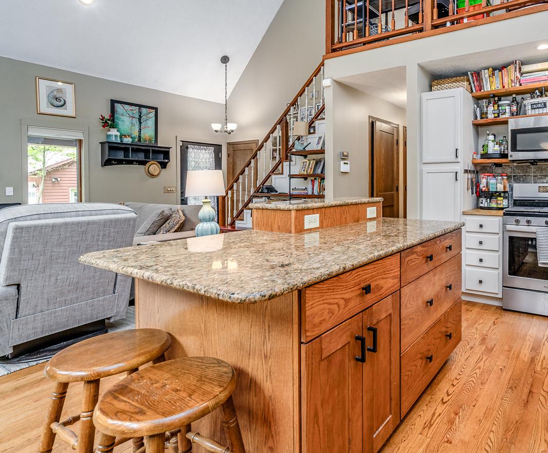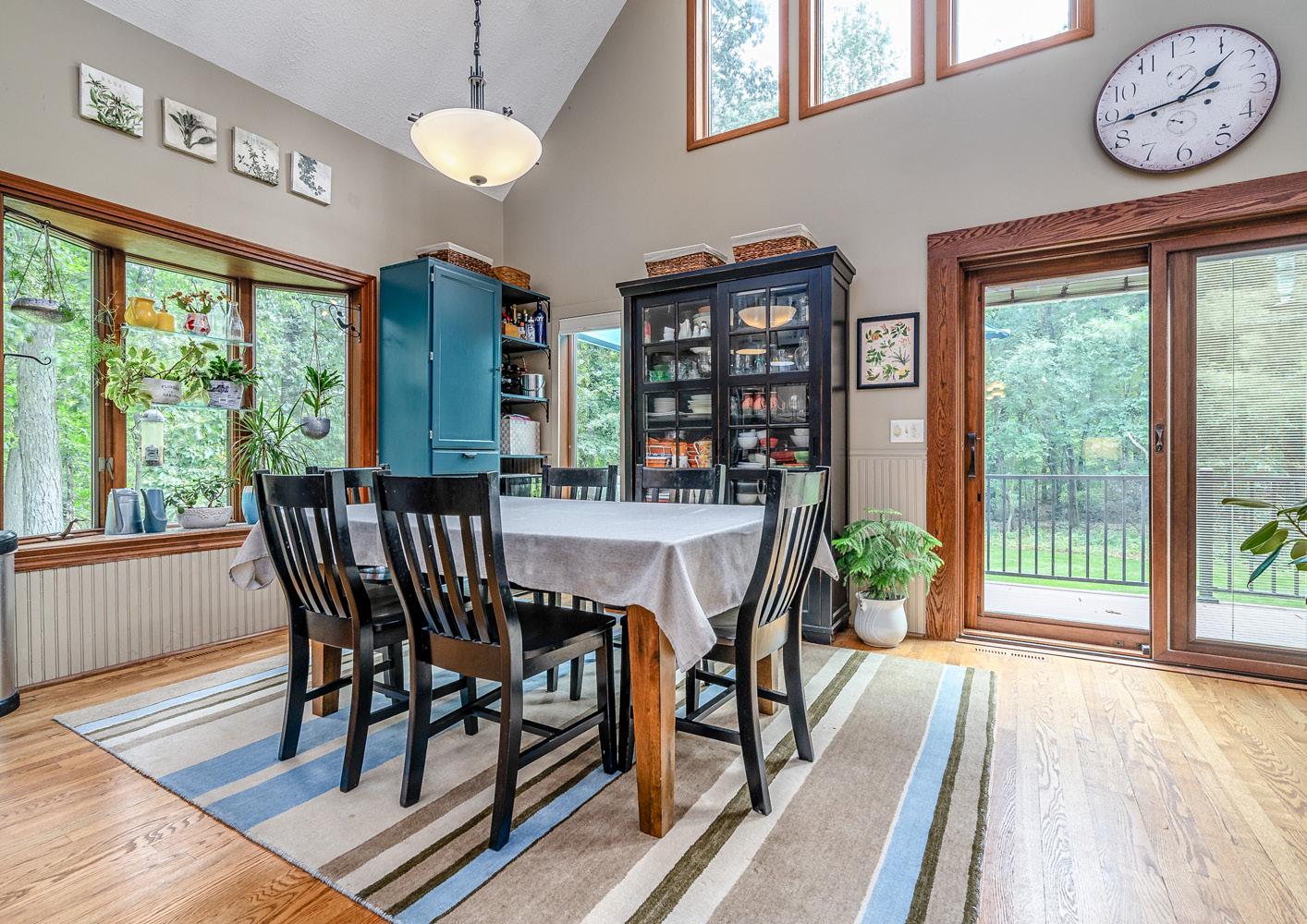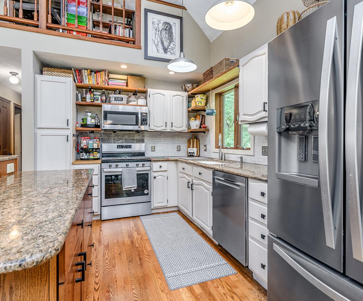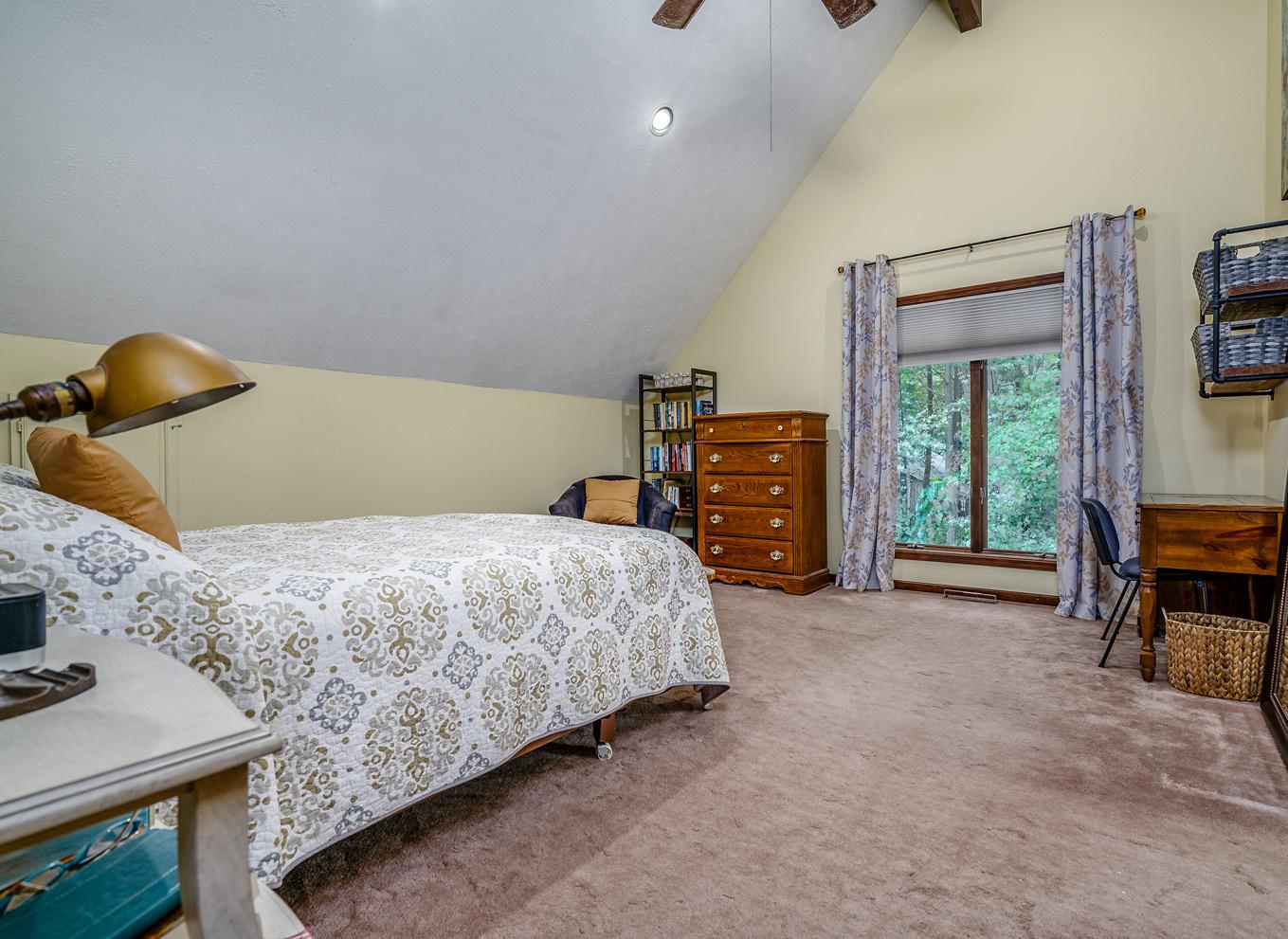 Welcome to this absolutely beautiful home nestled on a very private wooded lot that sits off the road giving it that ''Up North'' feel. The large covered front porch wraps around the home where you can sit and enjoy your beautifully landscaped yard and sunsets over the vineyard. Inside you are greeted with an open floor plan that is perfect for entertaining and enjoying the spectacular 23-foot vaulted ceiling that is accented by multiple windows bringing in the sunlight, nature and includes real hardwood floors. The open concept kitchen includes stainless steel appliances, granite countertops and an island with additional counter/dining space. The flexible dining area is a bonus when in need of a larger space for dining/gathering. Two sizable bedrooms and a full bathroom complete the main level. The primary en-suite is located on the second level giving privacy and includes a functional loft space that overlooks the main living area. Another nearly 900 finished square feet on the lower walkout level includes a room with a closet, two separate recreation areas, a half-bathroom, laundry/storage area and the mechanical room. Outside there is a 24x32 garage, two storage sheds (12x20 and 10x16) and a fenced in area with endless opportunities. All of this is located minutes from the highway and Texas Township, which continues to be one of the most sought-after communities for families, professionals and retirees and in the award-winning Mattawan School District.