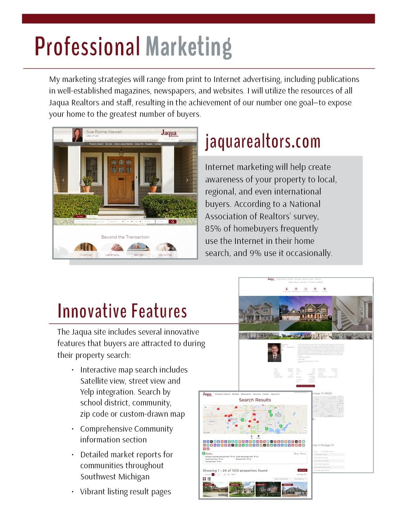 Jaqua Realtors has developed a comprehensive and aggressive marketing plan that is unmatched in the industry.