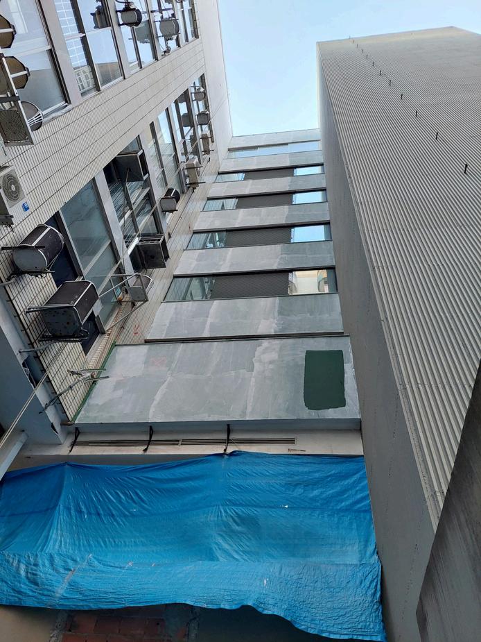 O prédio possui três frentes com marquises, e todas estão sendo impermeabilizadas devido a vazamentos.