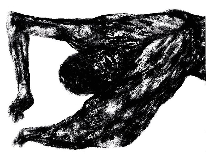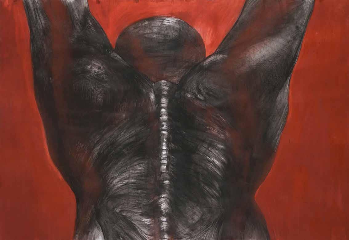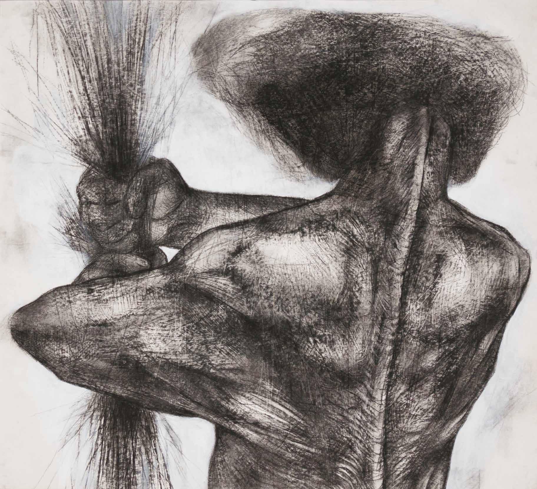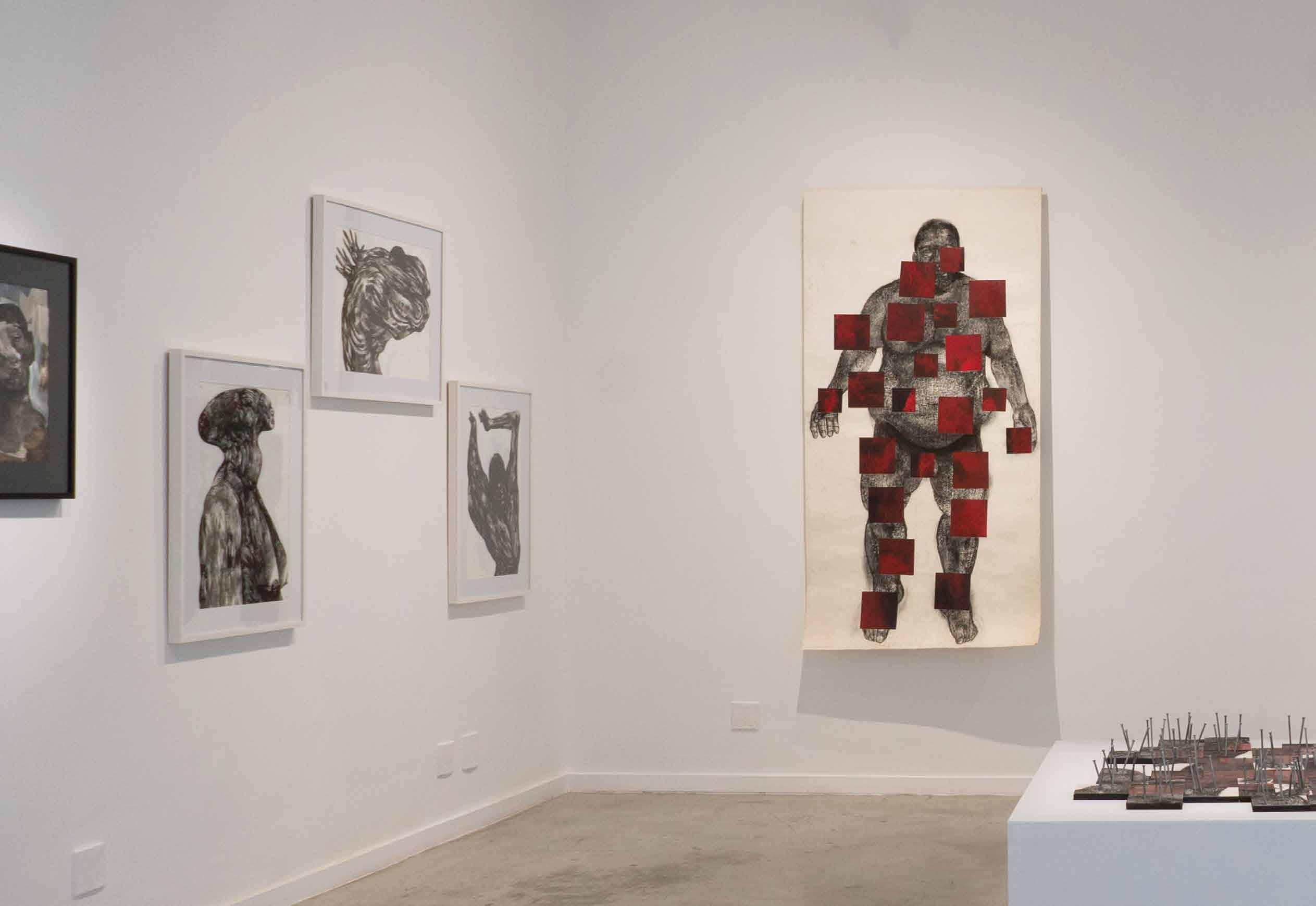 Anti-anatomy is how the artist characterizes his poetical-political proposal of drawing black antibodies, twisted and dismembered, with the intention of promoting a critical reflection over racial issues: “We need to destroy all the logic that defines the classical ‘anatomy lesson’ as a measure of the world, to make space for a dissection which allows the meaning of local ethnic-racial struggles to overflow”: “Anti-anatomy is the racial counterpoint to the officialization of whiteness as a norm”. In his drawings’ anti-anatomy, bodies open fissures which expose their entrails, showing their muscles, nerves, bones, blood, to make visible the spirit of their black ancestrality.