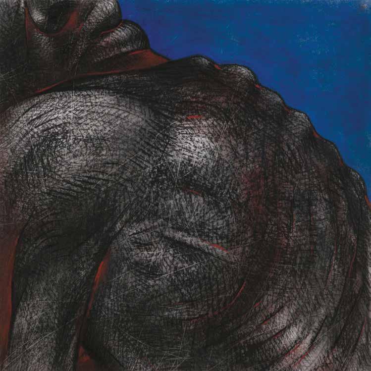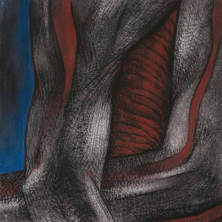 Um outro não destes desenhos é o que afirma a simplicidade de seus materiais: carvão, giz, grafite, borracha, pigmentos, papel –bem como a parcimônia das suas cores: preto e branco, vermelho