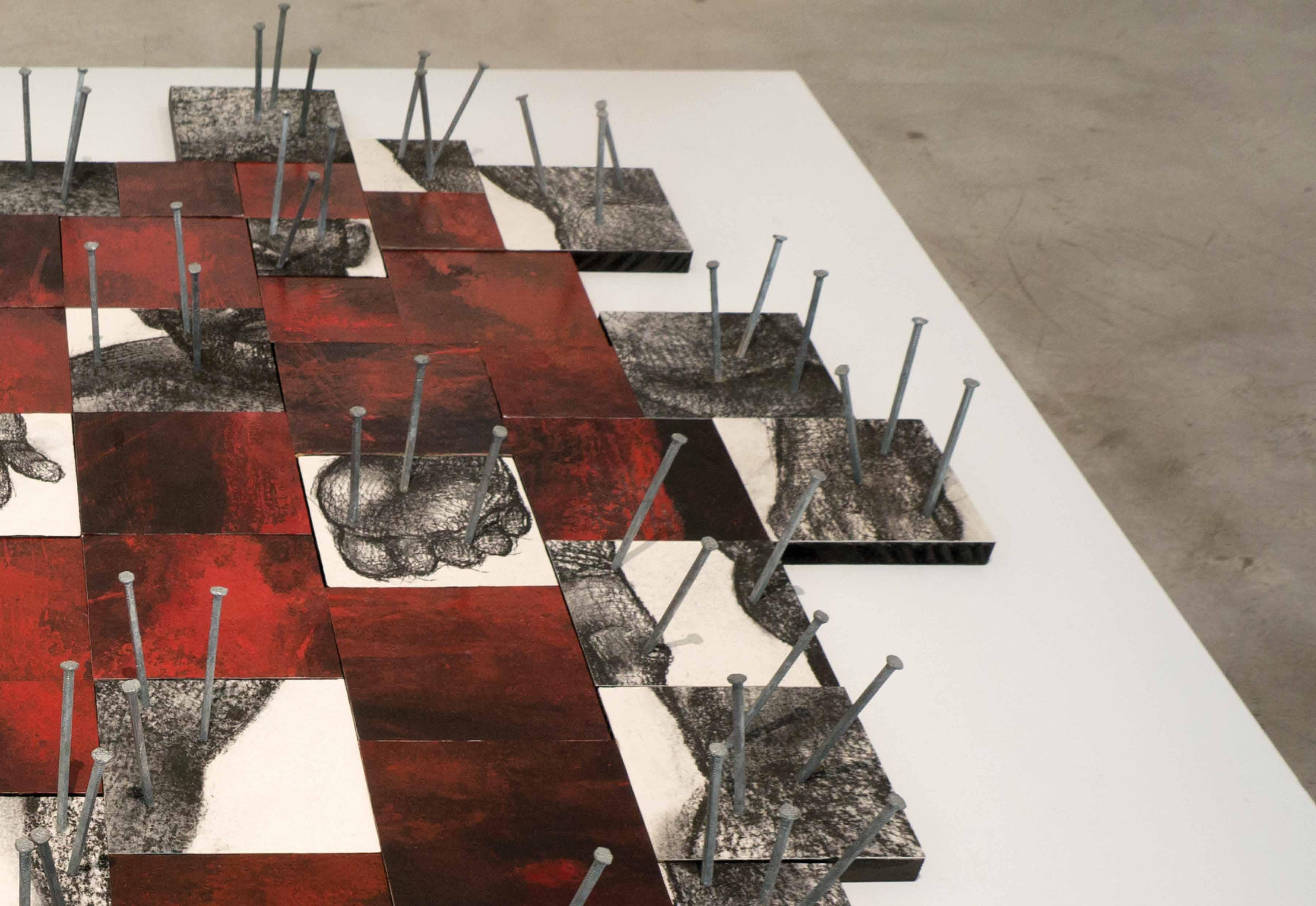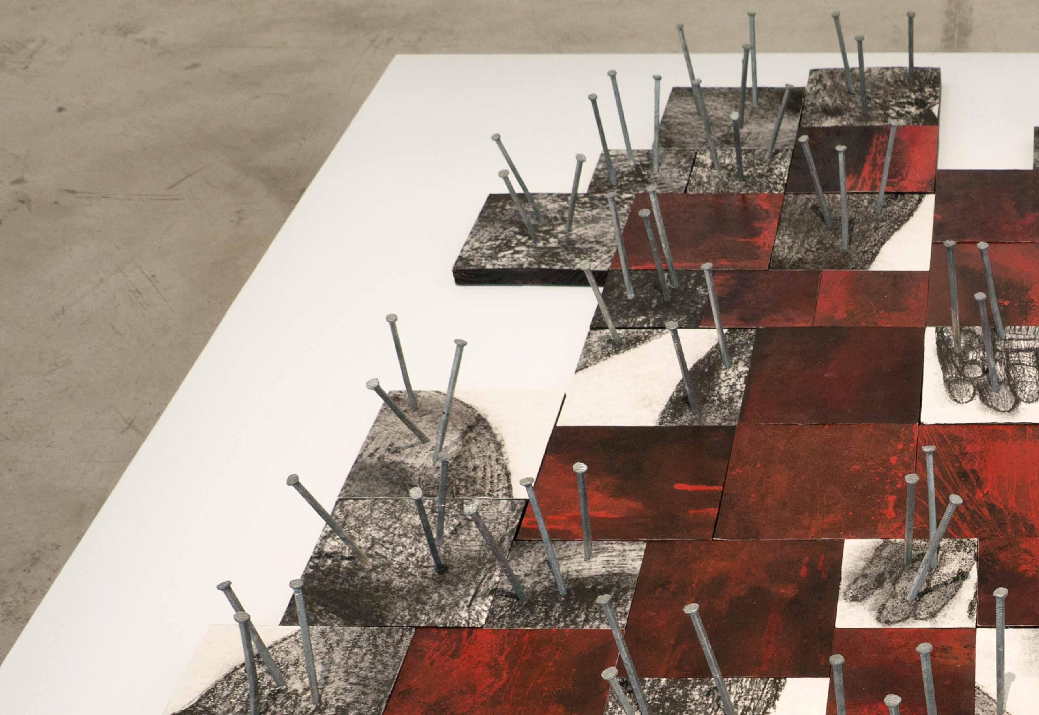 Another ‘no’ in these drawings is their simplicity of materials: charcoal, chalk, pencil, rubber, pigments, paper – as well as the parsimony of their colors: black, white, red, and blue. Not demanding complex materials and diverse colors, this drawings showcase the