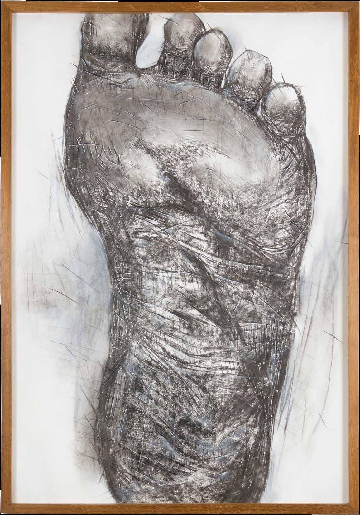 LUCIANO FEIJÃO é um artesão da imagem. Estudioso do desenho e conhecedor de diversas técnicas, ele trabalha como um mestre de ofícios que, de modo paciente e ponderado, labora suas imagens com perícia, utilizando os mais variados meios e recursos que domina: grafite, carvão, nanquim, pigmentos, borracha; pincel, pente, escova de dente, esponja, palha de aço, lâmina. A composição de seus desenhos possui um grande rigor formal. Sua imagem é construída das partes para o todo, com a reprodução de elementos de diferentes fotos, combinados por sua imaginação, que configura “realisticamente” insólitas figuras, distorcendo a realidade para mostrar o seu avesso, as suas entranhas, o seu estranho. Esta torção reflete o sentido político de seu trabalho, a sua luta contra o projeto eugenista de supremacia racial branca, e a favor do resgate de uma identidade negra brasileira: “A luta da população negra será sempre torcida, desmembrada e antianatômica.”