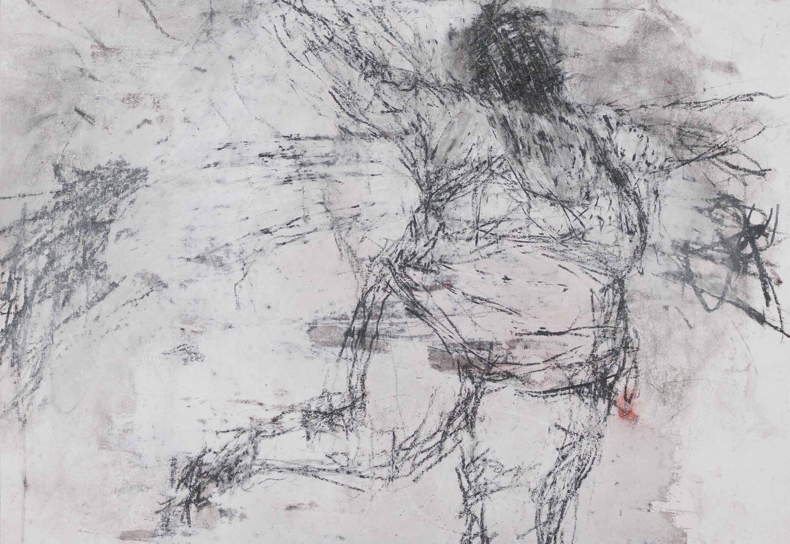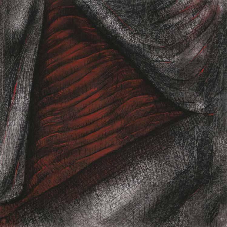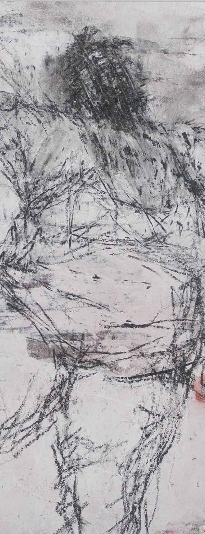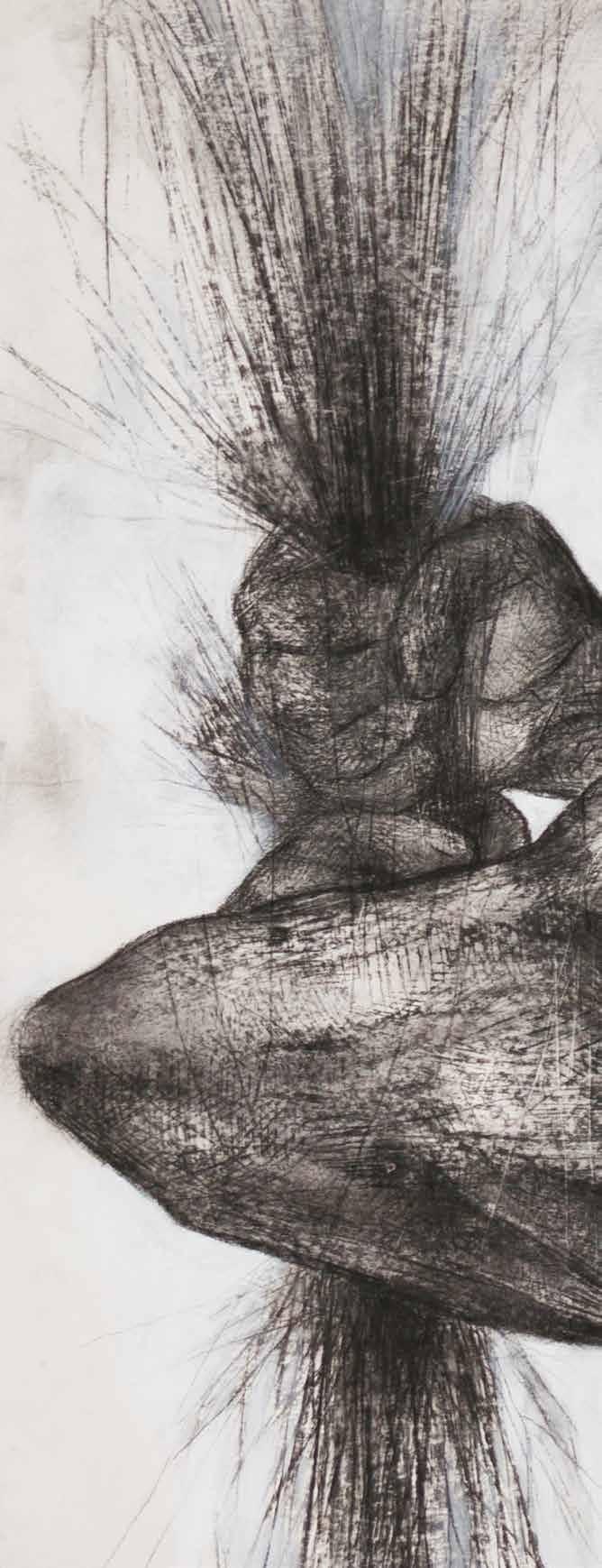 JULIANA PESSOA is an image discoverer. A disciple of drawing, she learns to draw by drawing, in the daily toil of drawing, drawing, drawing, always making, unmaking, remaking the whole drawing. Her image composition is elaborated from the whole to its parts. In this process of always deconstructing her entire drawing, images slowly arise in the remains of layers and lines which overlap in thin glazes that simultaneously hide and make visible the contours and details of parts, figure, and background. Slowly, everything appears at once, in an undifferentiated and integrated manner. Because she discovers her drawings by drawing, one can perceive different treatments of the image in her work, which appears at times configured in nervous traces, at others insinuated in soft stains, some with contours and others without, sometimes in multiple layers, at other times in a clean paper... depending on what drawing teaches.