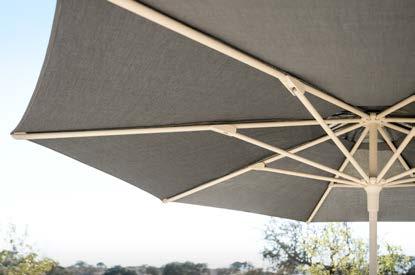 With a canopy incline of 10°, the umbrella looks enormously flat, drawing attention to its sleek lines with an elegant touch.
