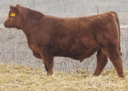 A red hided smooth made Reverand son from a 11-year-old dam. His 111 YW ratio and ranking 2nd for ADG and WDA shows that the steers will produce pay weight. His females should make long lasting productive cows. A balanced combination bull that brings many positive attributes to the table.