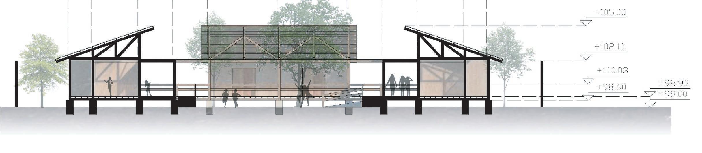 Las estrategias utilizadas se resumen en el uso de una malla compositiva y cerchas de madera.