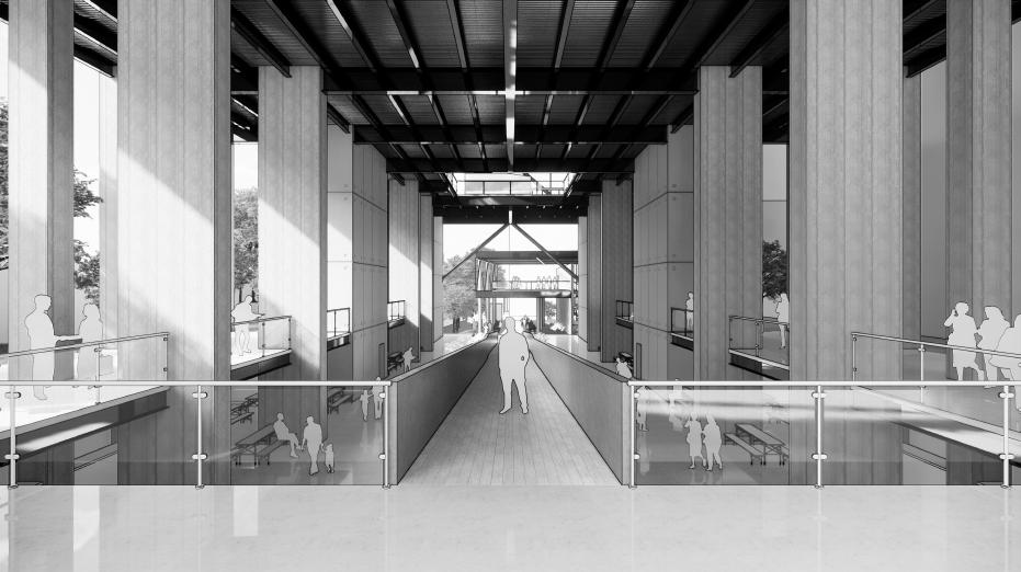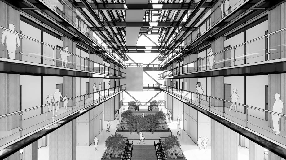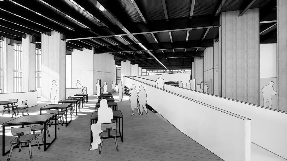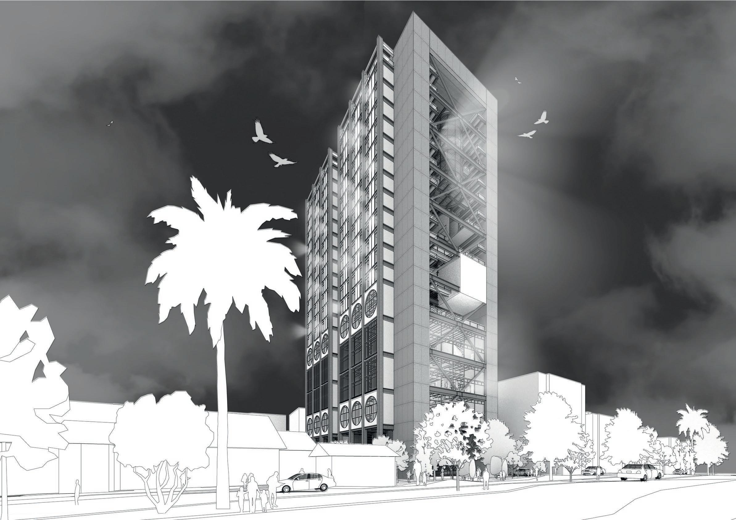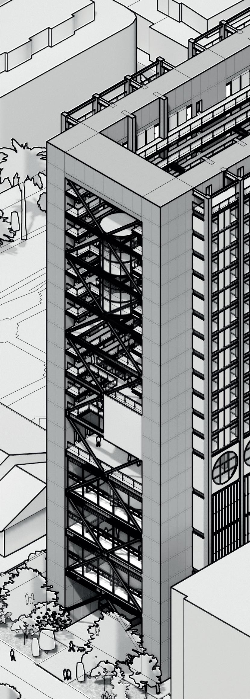 Se busca generar espacio público vertical, mediante el uso de una torre de acceso que permita la accesibilidad para equipamientos comunales tales como bibliotecas, salas de lectura y de música.