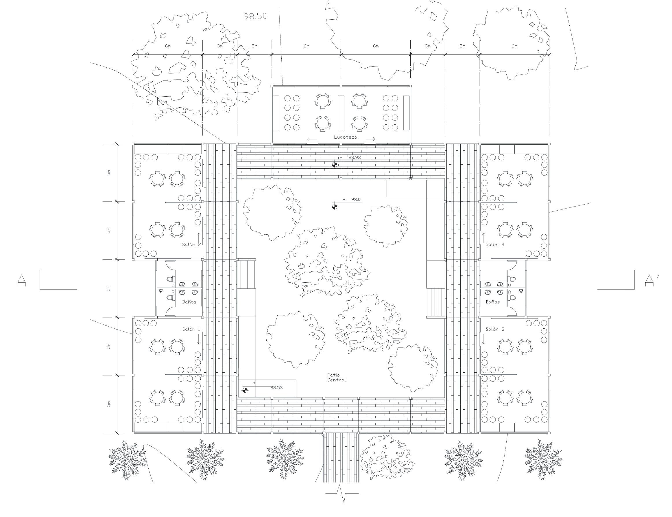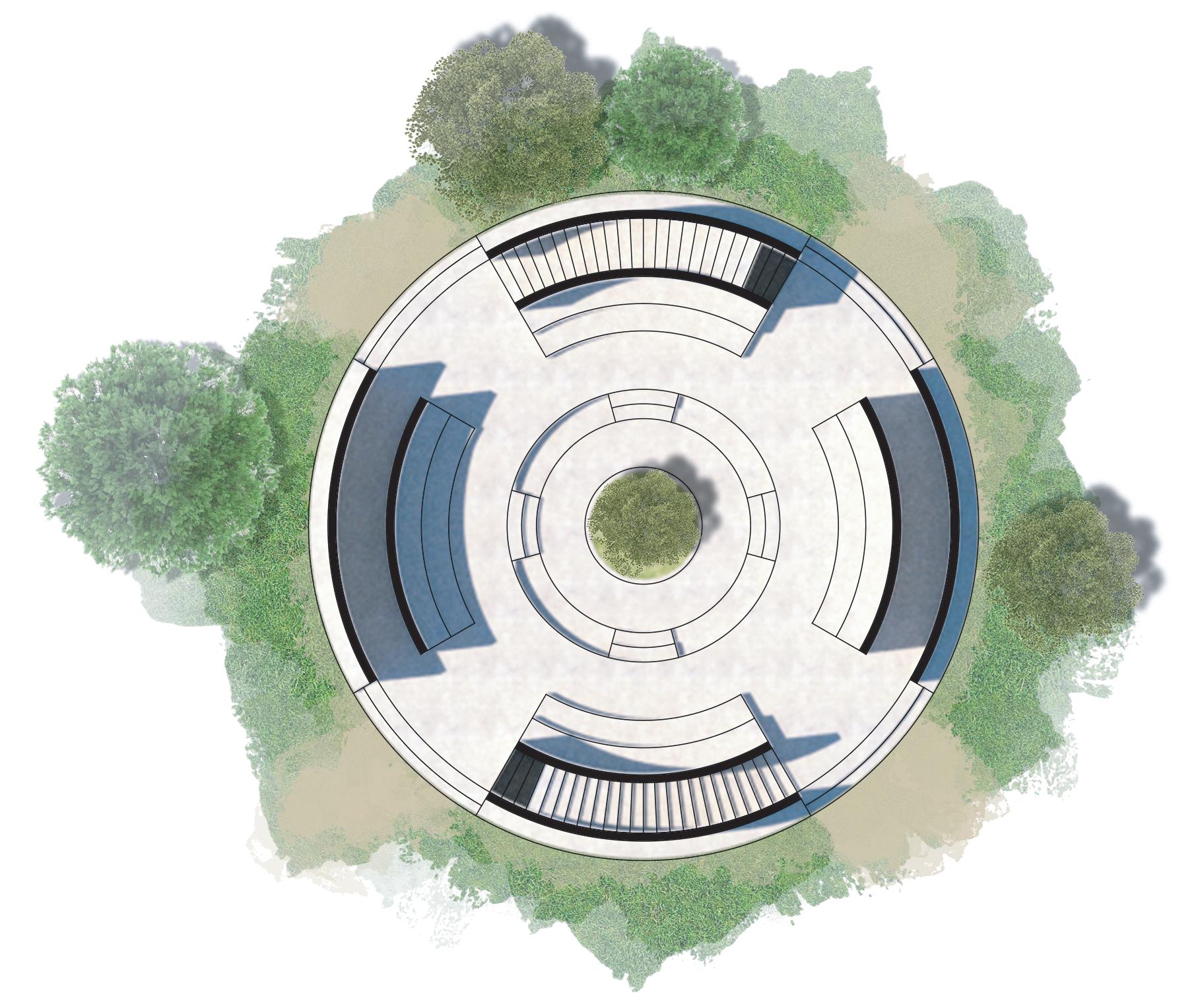 Las estrategias utilizadas se resumen al uso del circulo como elemento agrupador junto a la sombra, como recurso de estancia y refugio para los visitantes del parque.