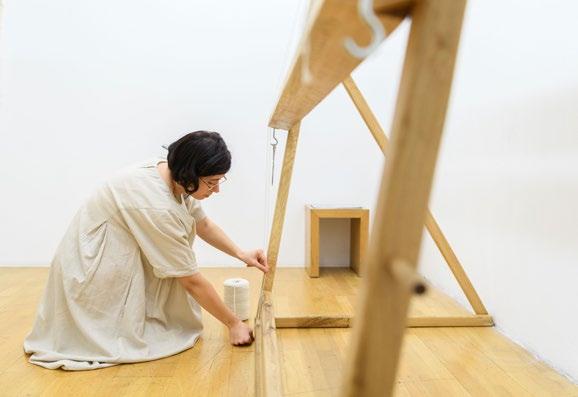 But despite all the challenges, Qose singles out the performance at the Zeta Gallery in Tirana as one of the most beautiful experiences in her artistic career. During the exhibition, she embarked on a deeply personal and introspective journey, where she devoted herself every day to weaving a carpet on a loom.