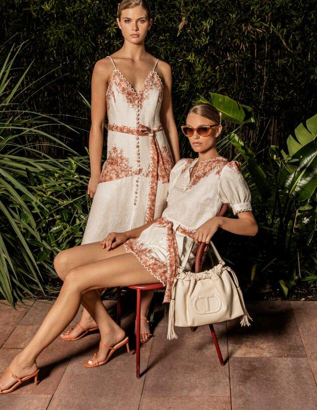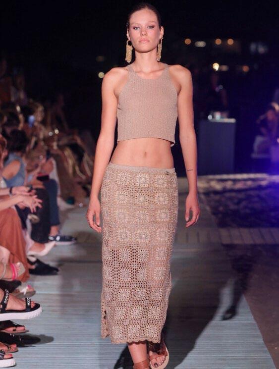 Twinset Milano's Spring-Summer 2024 collection is inspired by the magic of India’s Rajasthan, with its vibrant colours, desert dunes and fragrant spice markets. The Twinset woman embarks on a complete sensory journey, in which what she wears contributes to the magical narrative: from long jersey dresses that softly envelop the body, to head-to-toe looks consisting of lightweight jackets and crocheted shorts. Golden lurex is the star of the show in slip dresses paired with exotic maxi cardigans.