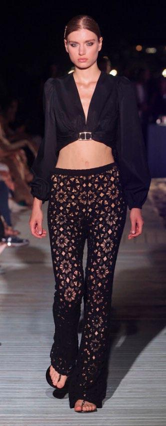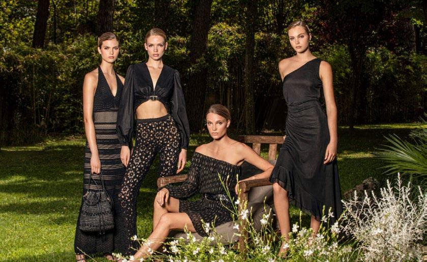The prints are reminiscent of Indian landscapes: from floral patterns embroidered on linen, also adorning the buttons of jackets and shirts, to animal prints for a bold twist, creating a synergy between fashion and nature. The collection’s bohemian soul is further confirmed by the use of iconic fringes and feathers, enriching each garment with a touch of lightness and softness. Once again, all-Italian knitwear – the brand’s true hallmark – plays a central role, particularly with a striped sailorinspired motif in shades of blue and white, as a reference to the world of sailing and navigation.