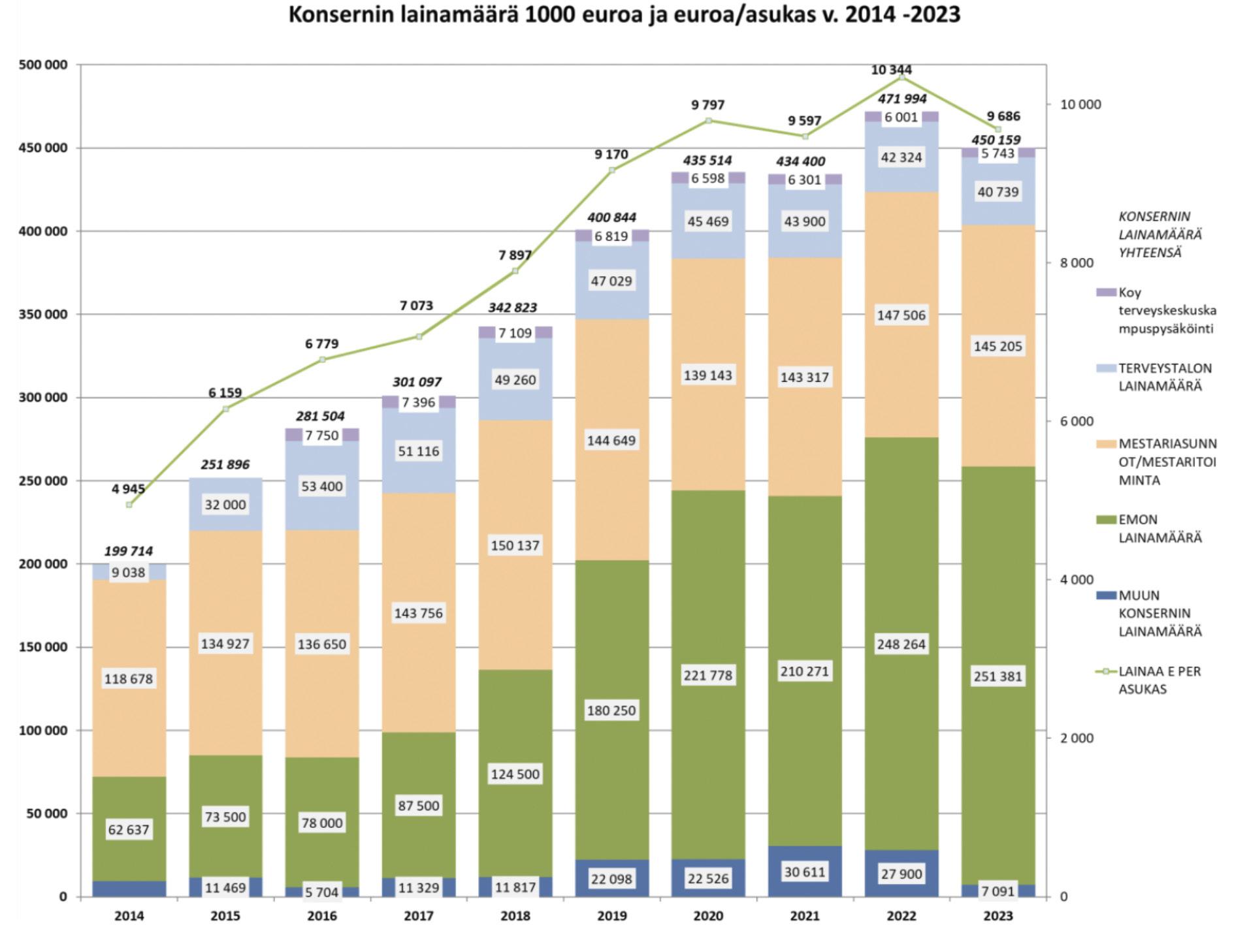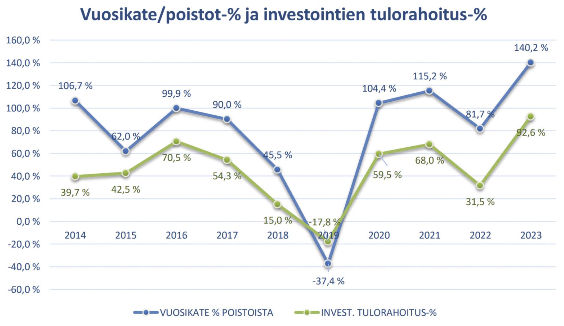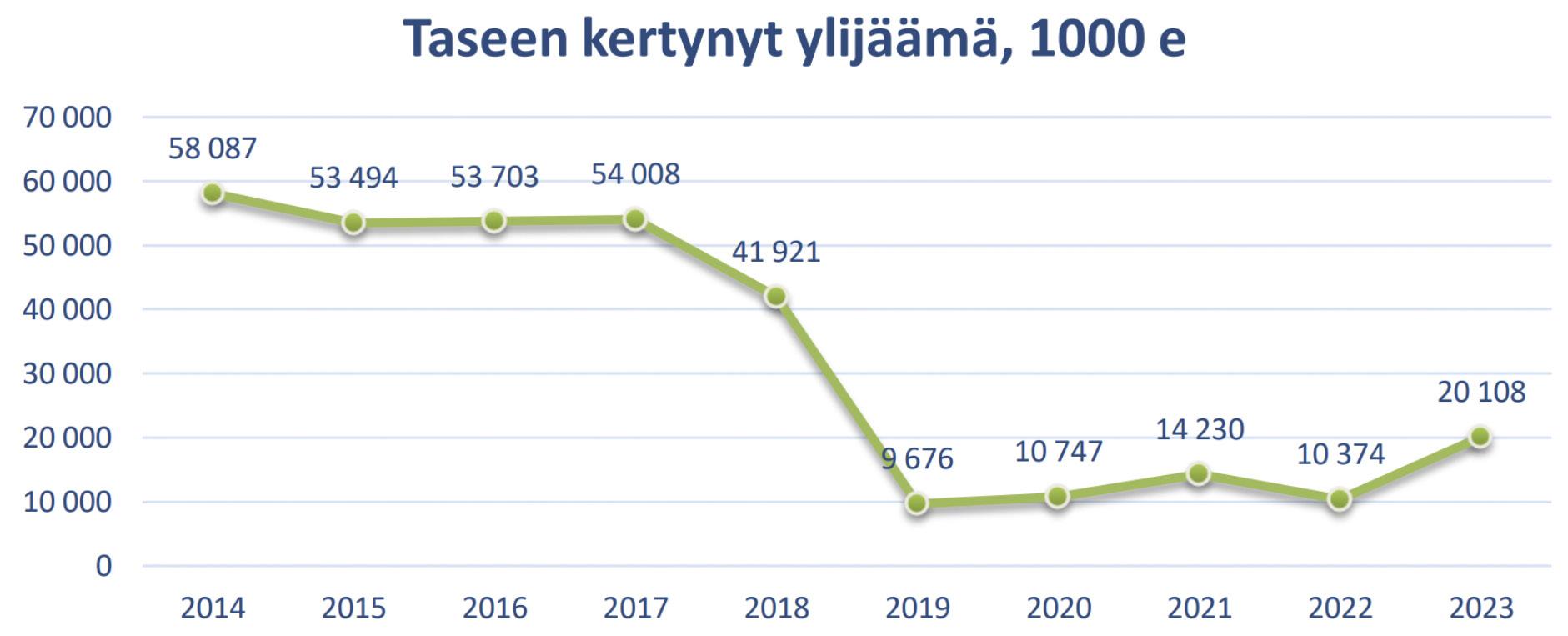 Vuoden 2023 tulos oli 9,9 miljoonaa euroa ylijäämäinen. Ylijäämä on pitkälti ns. verohäntien ansiota, mutta em. epävarmuus val-