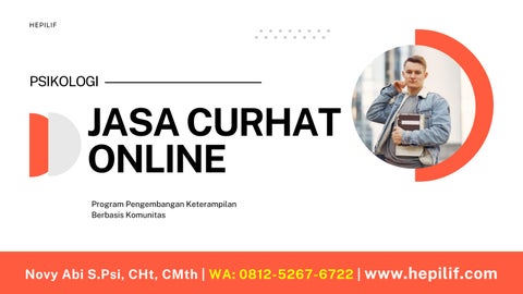 WA: 0812-5267-6722 | Tes Kepribadian Online, Jasa Curhat Online, Tes Minat Bakat Online, Layanan Konseling Psikologi, Layanan Hipnoterapi, Psikoterapis. Itu adalah perjalanan yang pribadi dan diperlukan, dan dapat dimulai dengan langkah kecil β dengan sebuah percakapan, Jasa Curhat Online. Hubungi Segera Disini HEPILIF MALANG Ibu Novy Abi S.Psi, CHt, CMth Telp/WA: 0812-5267-6722 Telp/WA: 0812-5267-6722 https://hepilif.com #JasaCurhatOnline#TesKepribadianOnline #JasaCurhatOnline #TesMinatBakatOnline #LayananKonselingPsikologi #LayananHipnoterapi #Psikoterapis