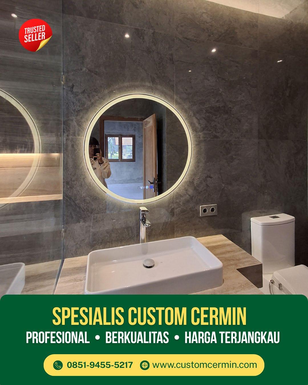 Untuk kebutuhan khusus, kami melayani Custom Cermin Mata dengan presisi tinggi. Kami juga mengerjakan Custom Cermin Kamar Mandi, Cermin Toilet Custom, dan Cermin Wastafel Custom dengan material tahan lembap dan finishing rapi sehingga aman digunakan di area basah.