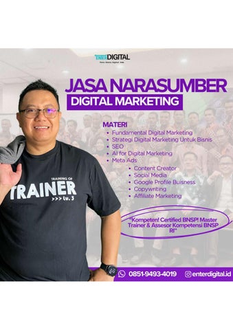 "LANGSUNG HUBUNGI! KLIK WA https://wa.me/6285194934019, Link Narasumber Digital Marketing Malang Jasa Narasumber Digital Marketing Profesional – Coach Hadi Priyotomo Butuh Narasumber Ahli Digital Marketing untuk Seminar, Workshop, atau Pelatihan Anda? Kenalkan: Coach Hadi Priyotomo – Narasumber Digital Marketing Terpercaya untuk Perusahaan, Instansi, Kampus, dan Komunitas di Seluruh Indonesia! Topik Populer yang Dibawakan Coach Hadi ? Digital Marketing dari Nol untuk Pemula ? Cara Jualan Laris Lewat Instagram & TikTok ? Strategi Iklan Facebook & Meta Ads ROI Maksimal ? Optimasi Konten SEO untuk Google ? Cara Bangun Personal Branding sebagai Expert di Media Sosial ? AI Tools untuk Marketing – Otomasi Konten & Leads! Paket & Layanan yang Ditawarkan ? Seminar Offline & Online (Zoom/Webinar) ? In-House Training Digital Marketing untuk Tim Perusahaan ? Bootcamp Intensif Bersertifikat (1-3 Hari) ? CSR Partner untuk Pelatihan Komunitas & Edukasi Digital Ingin Menghadirkan Coach Hadi di Acara Anda? Hubungi Sekarang dan Jadwalkan Sesi Terbaik Bersama Coach Hadi Priyotomo! WhatsApp: 0851-9493-4019 atau klik https://wa.me/6285194934019 Website: https://enterdigital.id/ Instagram : @enterdigital.id Lokasi: Siap hadir di kota Anda, seluruh Indonesia & Online via Zoom