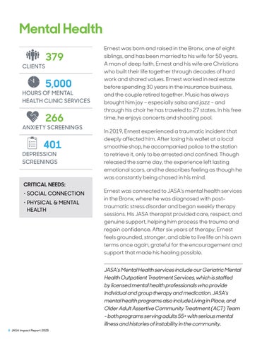 Ernest receives Mental Health services for older adults with depression, anxiety, or other mental health issues. JASA’s programs also provide individual and group therapy.