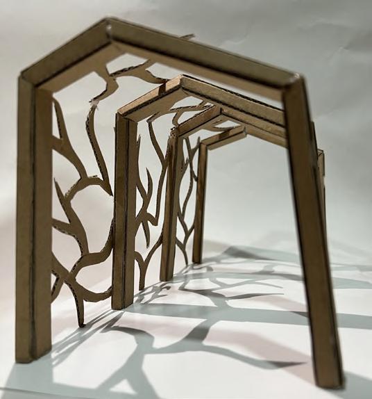 The detail drawing of the consultation pods, shows what it includes. A 1:5 table prototype was made to illustrate the details in the table’s legs, using bio materials. The prototype clearly shows how the real structure would look like.